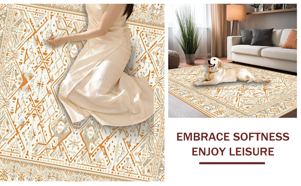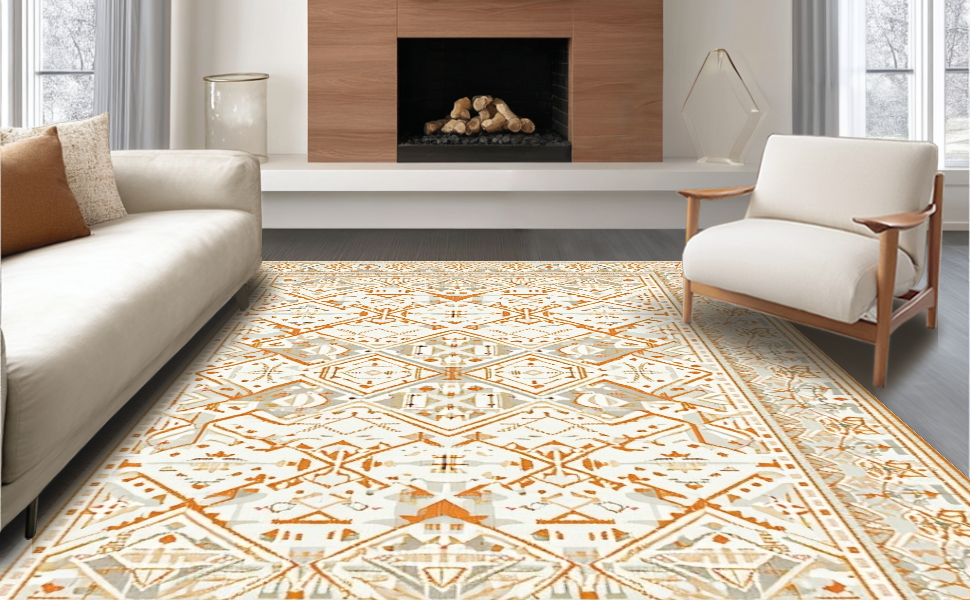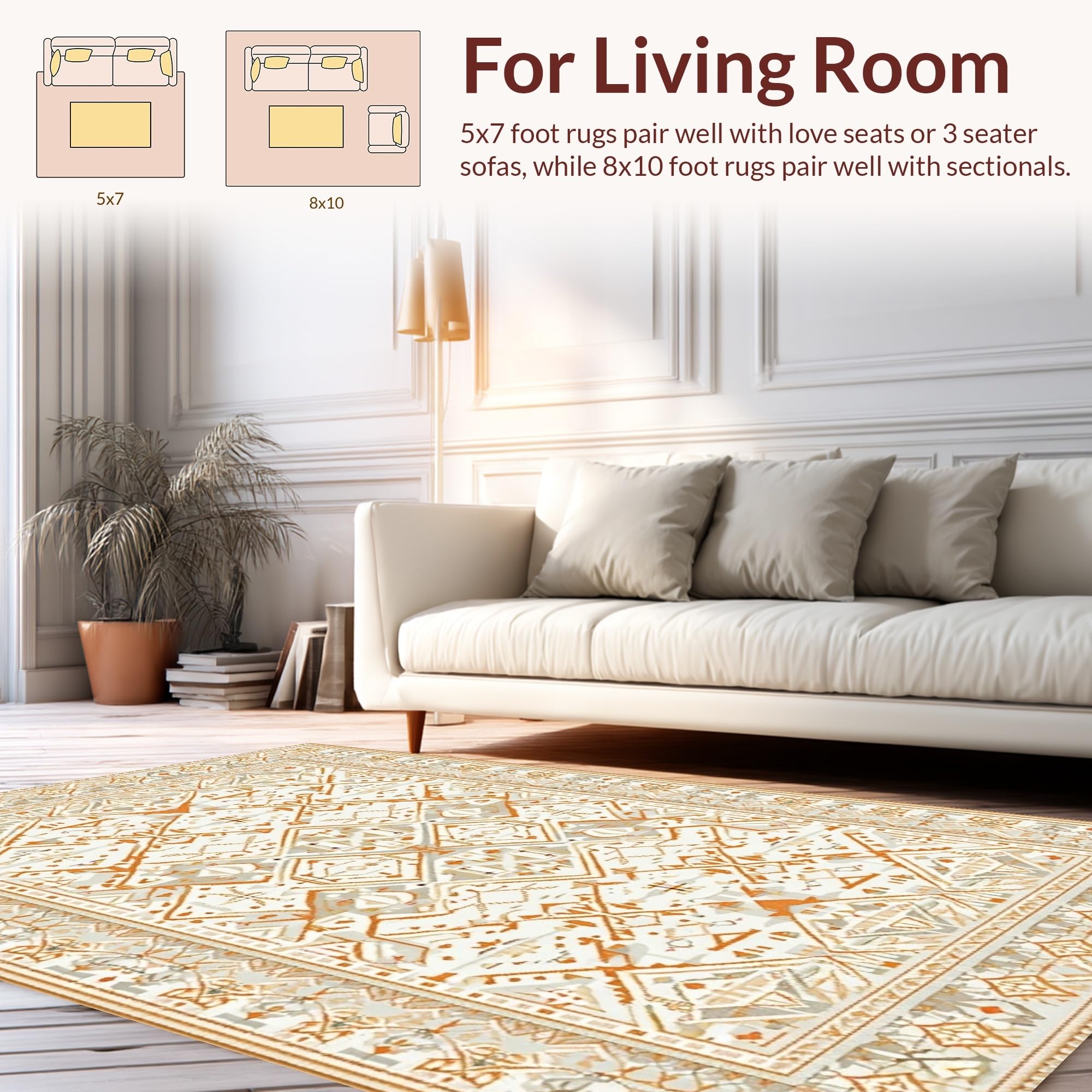 Ultra Soft Area Rug, Non Slip, Stain Resistant, Washable Area Rugs for Living Room, Bedroom, Classic Geometric Linear Artistry(Beige) Overview: