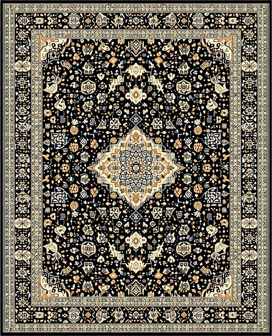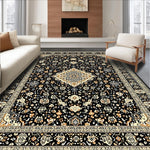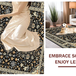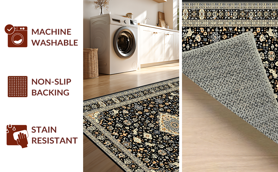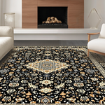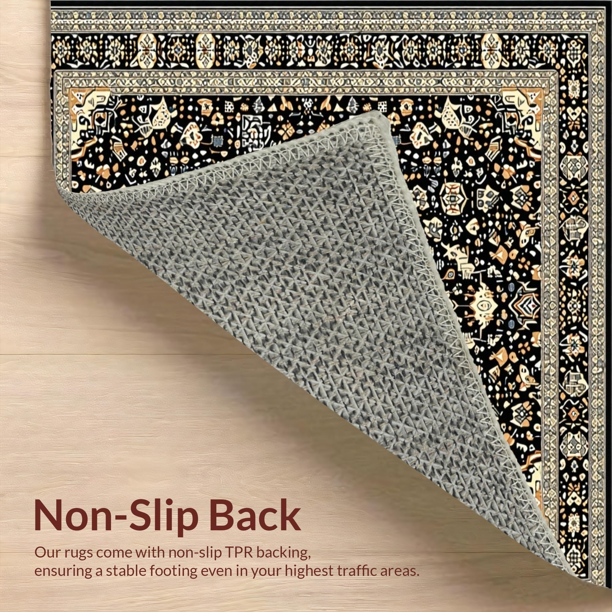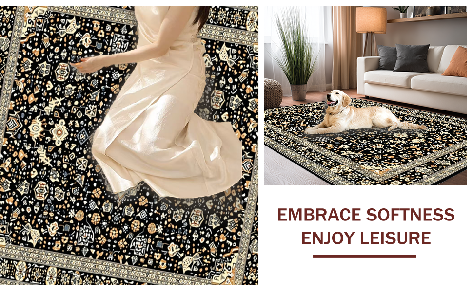 Ultra Soft Area Rug, Non Slip, Stain Resistant, Washable Area Rugs for Living Room, Bedroom, Classic Gold Accented Geometric Pattern(Black) Overview: