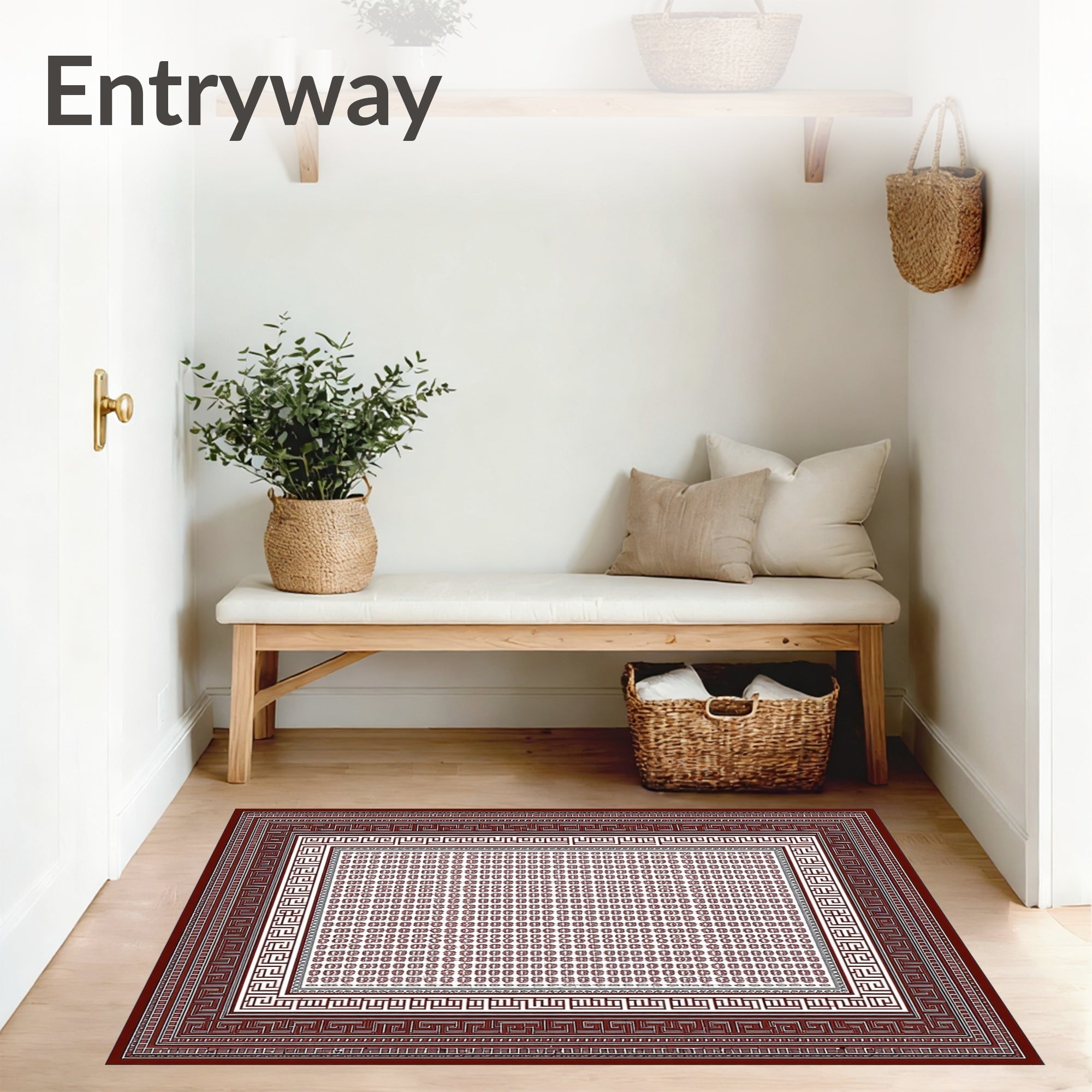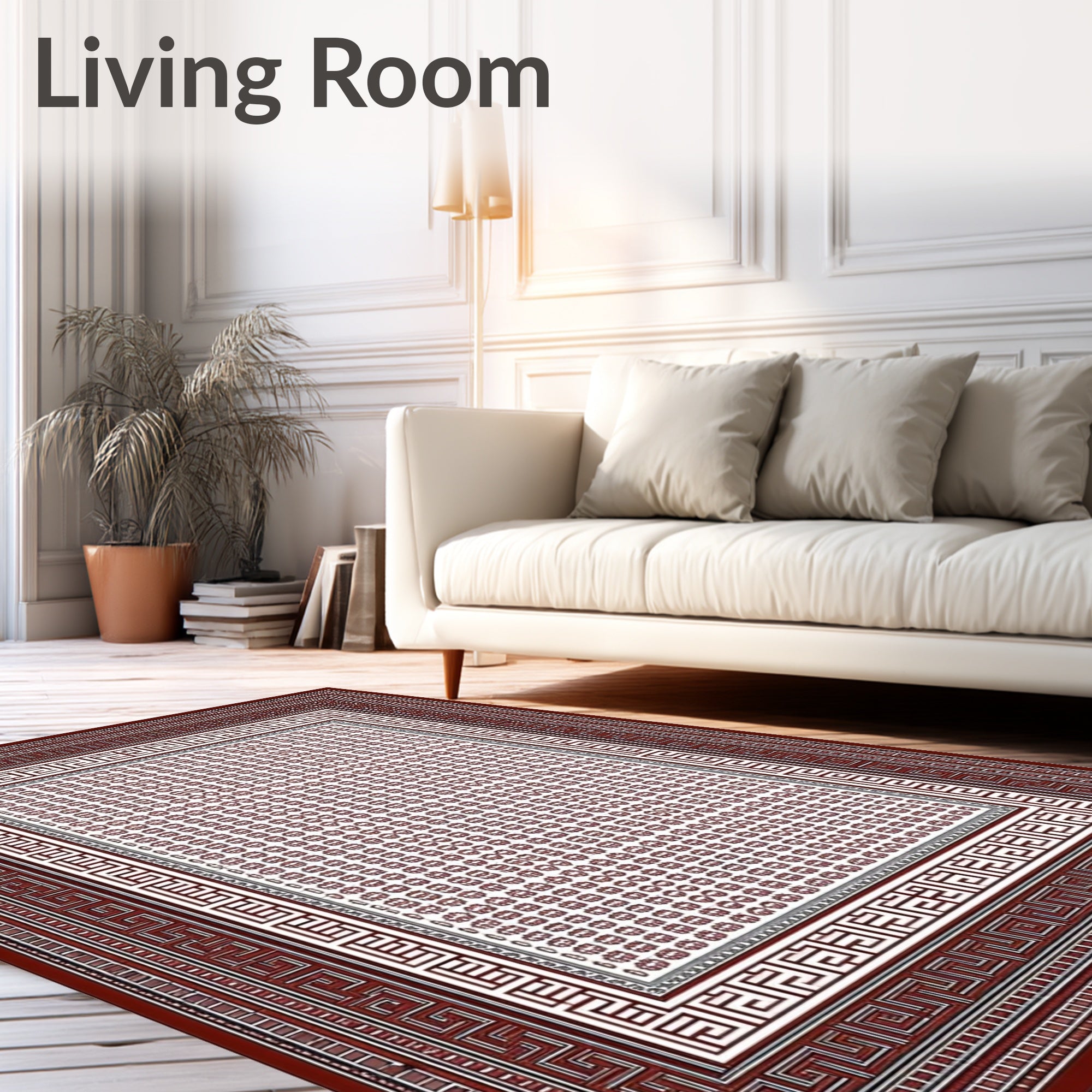 Flatwoven High Traffic Area Rug, Classic Greek Inspiration, Non Slip, Stain Resistant, Washable Area Rugs for Living Room, Bedroom (Brown) Overview:
