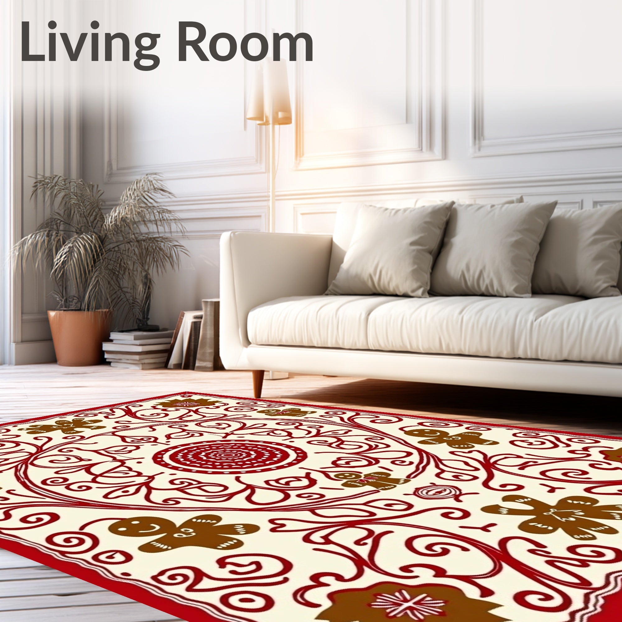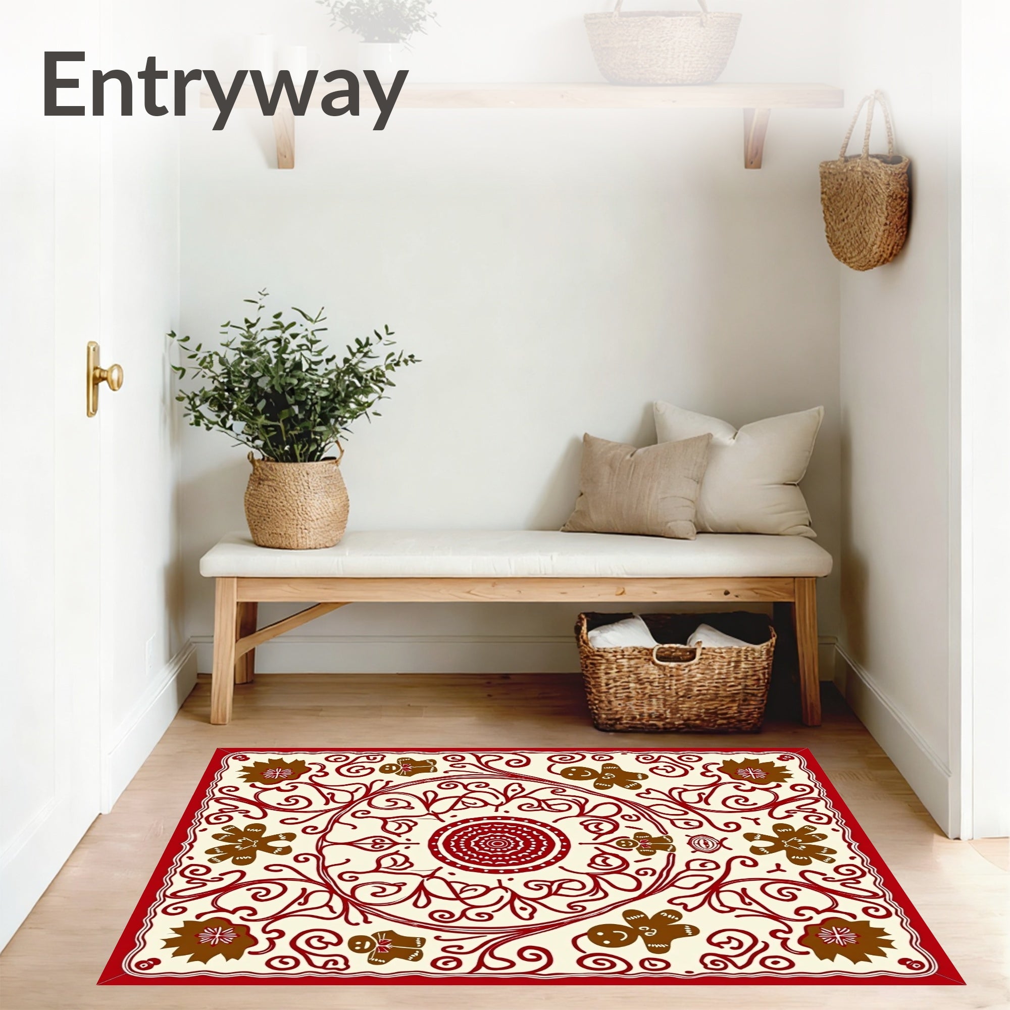 Ultra Soft Area Rug, Non Slip, Stain Resistant, Washable Area Rugs for Living Room, Bedroom, Classic Holiday Sweets Featuring Gingerbread and Peppermint Swirls(Red) Overview: