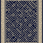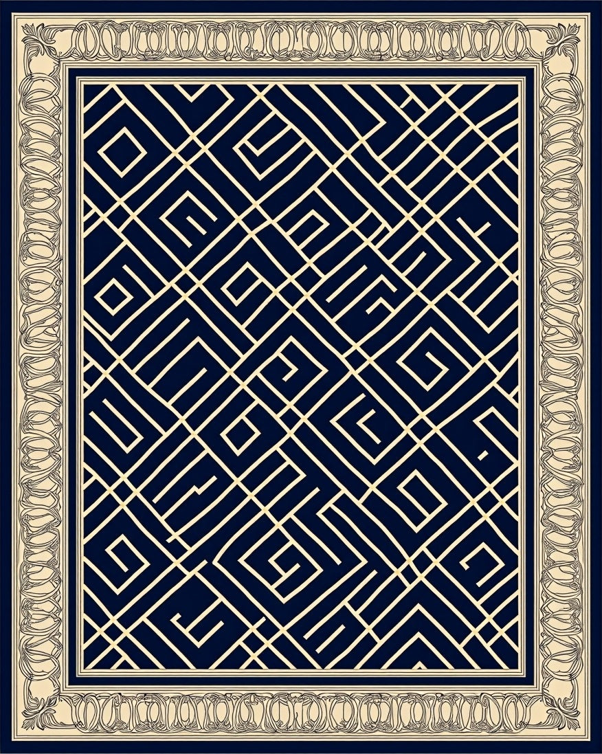 Classic Interlocking Trellis Motif with Ornate Scrollwork Accents(Navy)