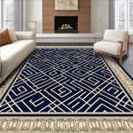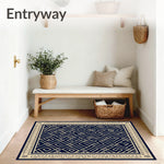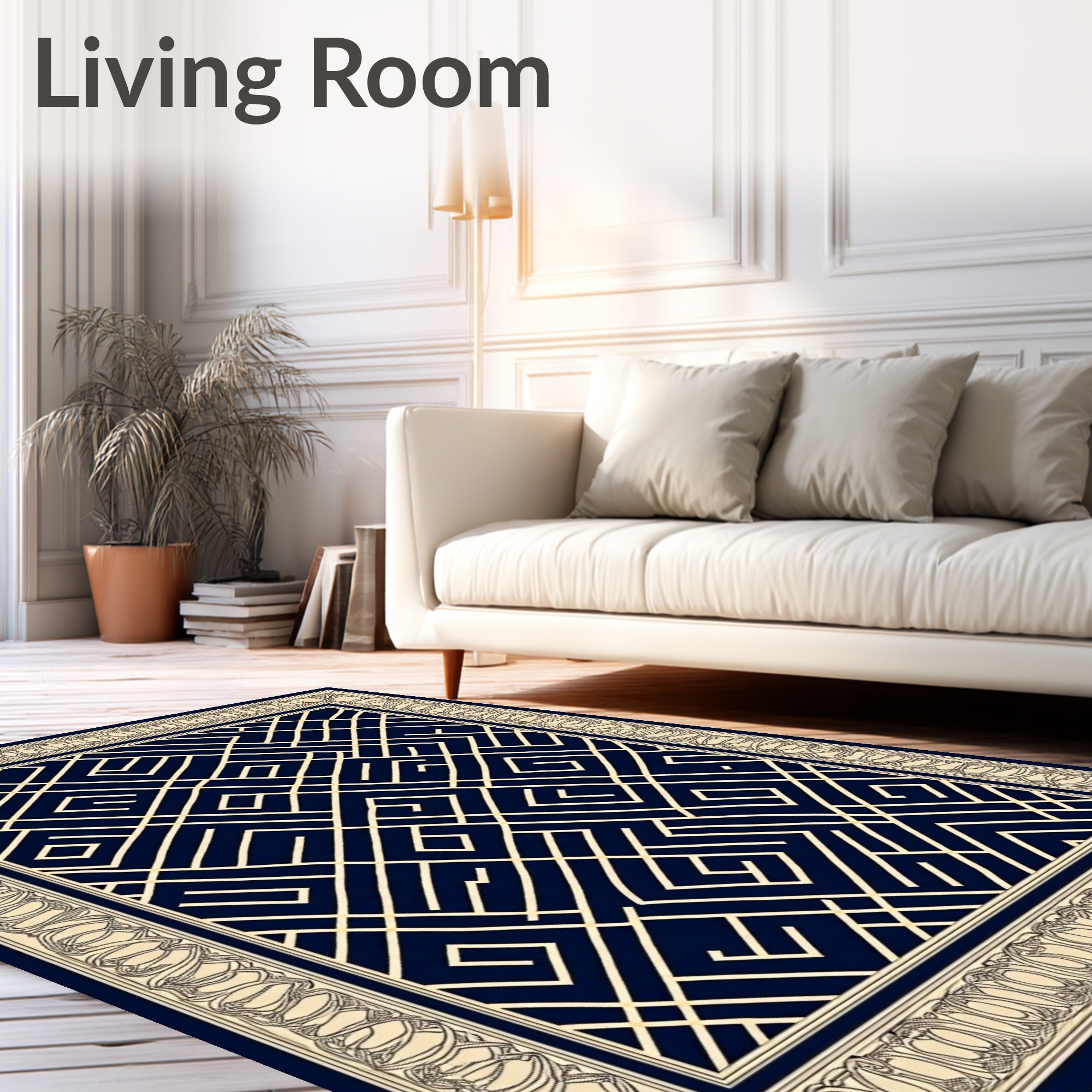 Ultra Soft Area Rug, Non Slip, Stain Resistant, Washable Area Rugs for Living Room, Bedroom, Classic Interlocking Trellis Motif with Ornate Scrollwork Accents(Navy) Overview: