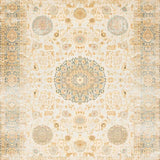 Classic Low Pile Area With Faded Ornamental Medallion Motifs(Beige)