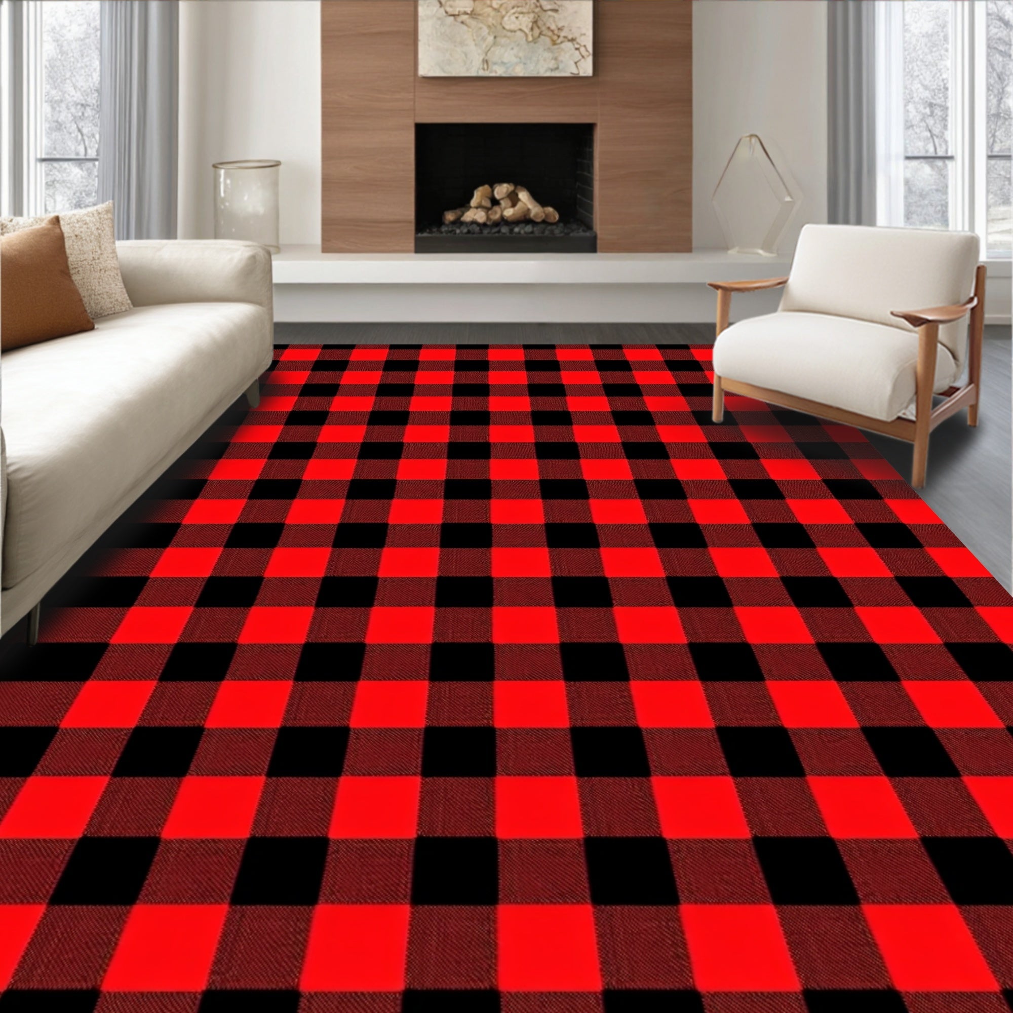 Ultra Soft Area Rug, Non Slip, Stain Resistant, Washable Area Rugs for Living Room, Bedroom, Classic Lumberjack Tartan Check Modern Heritage Design(Red) Overview: