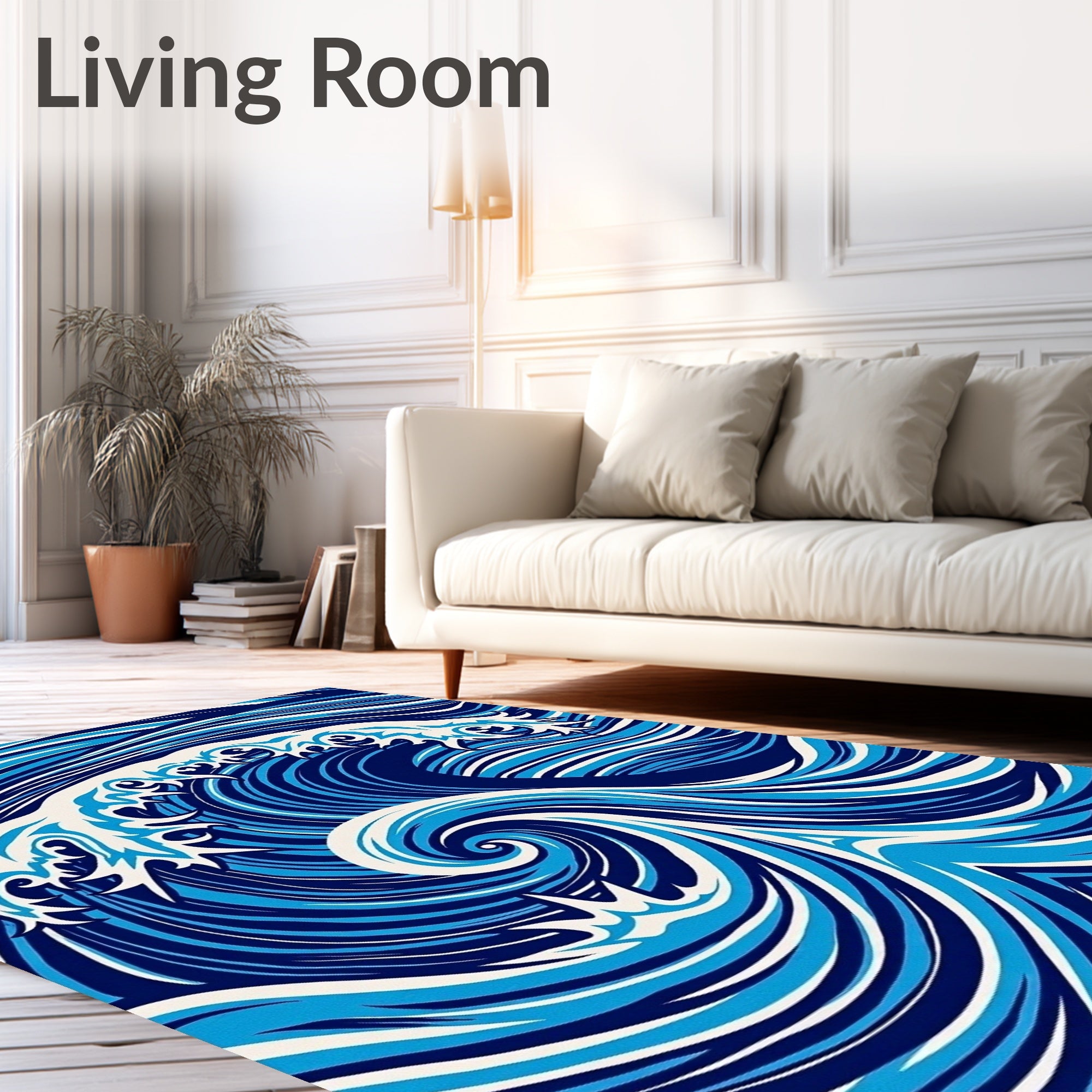 Ultra Soft Area Rug, Non Slip, Stain Resistant, Washable Area Rugs for Living Room, Bedroom, Classic Maritime Storm Nautical Artistic Tapestry(Blue) Overview: