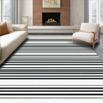 Ultra Soft Area Rug, Non Slip, Stain Resistant, Washable Area Rugs for Living Room, Bedroom, Classic Monochrome Striped Flat Weave Rug with Reversible Farmhouse Design(Black) Overview: