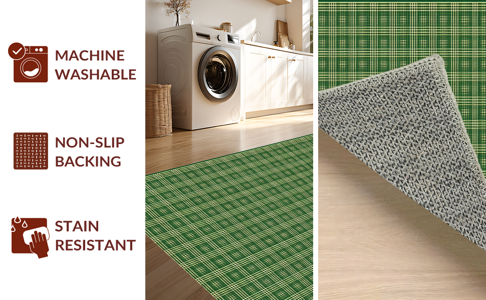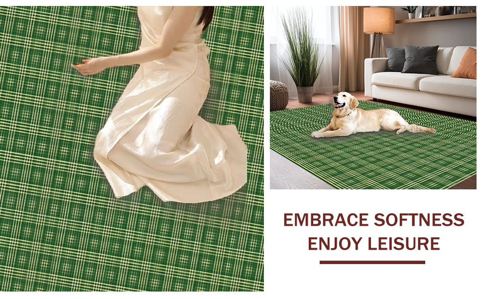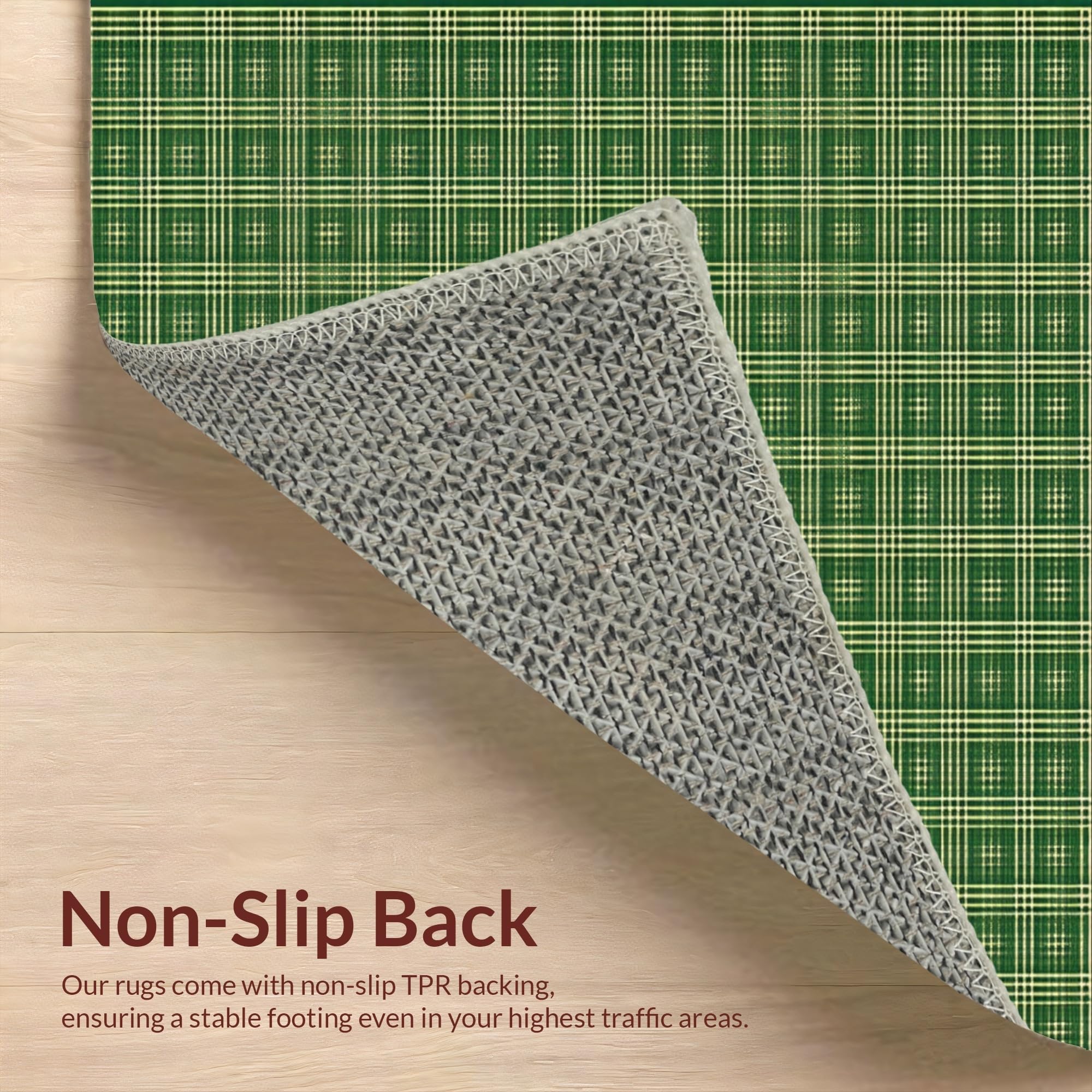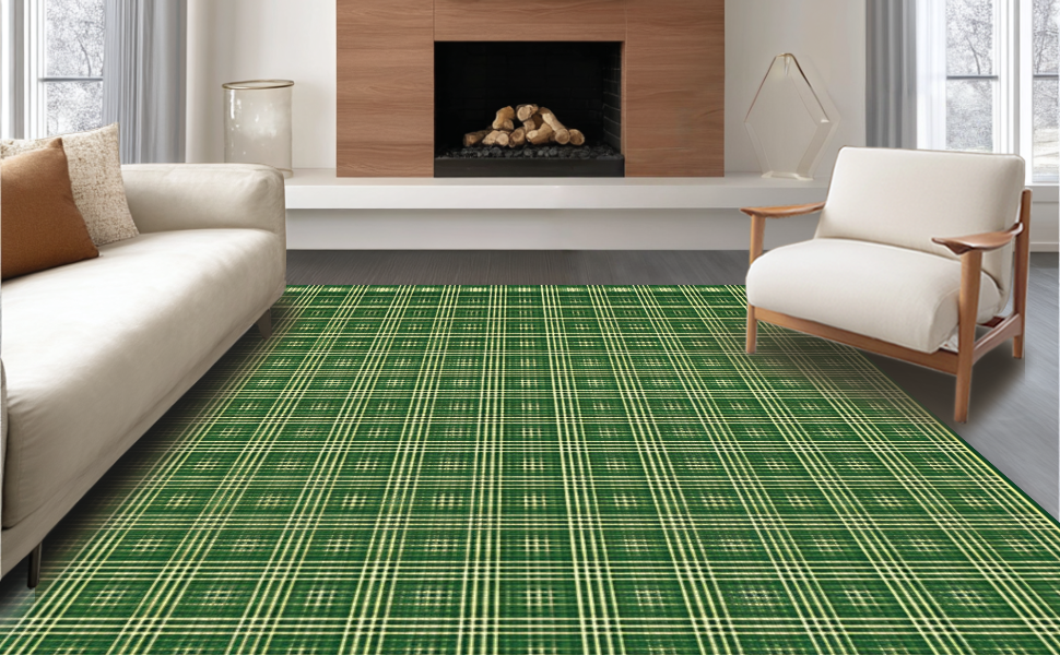 Ultra Soft Area Rug, Non Slip, Stain Resistant, Washable Area Rugs for Living Room, Bedroom, Classic Olive Green Checkerboard Style(Green) Overview: