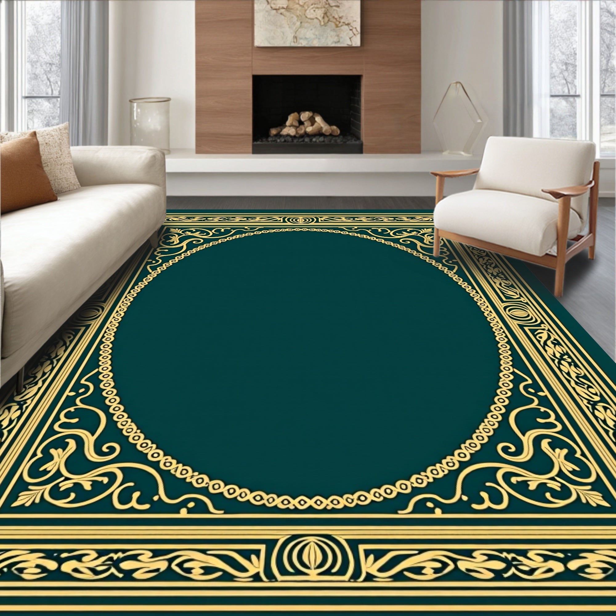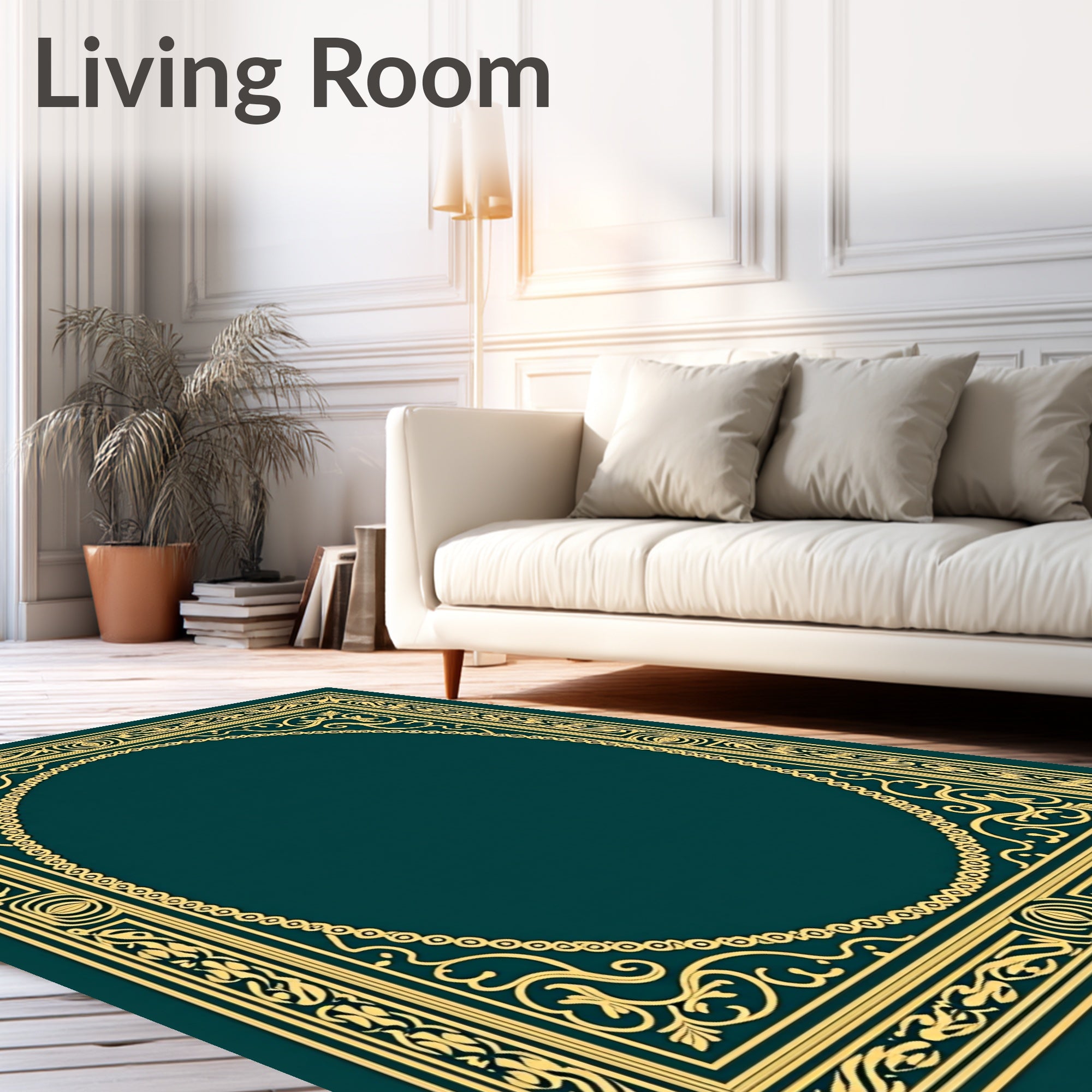 Flatwoven High Traffic Area Rug, Classic Ornate Scrollwork with Interlocking Floral Filigree, Non Slip, Stain Resistant, Washable Area Rugs for Living Room, Bedroom (Green) Overview: