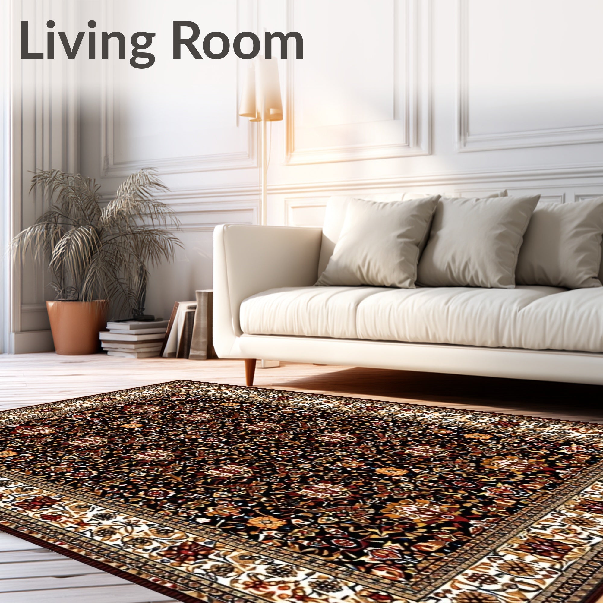 Ultra Soft Area Rug, Non Slip, Stain Resistant, Washable Area Rugs for Living Room, Bedroom, Classic Paisley Runner(Black) Overview: