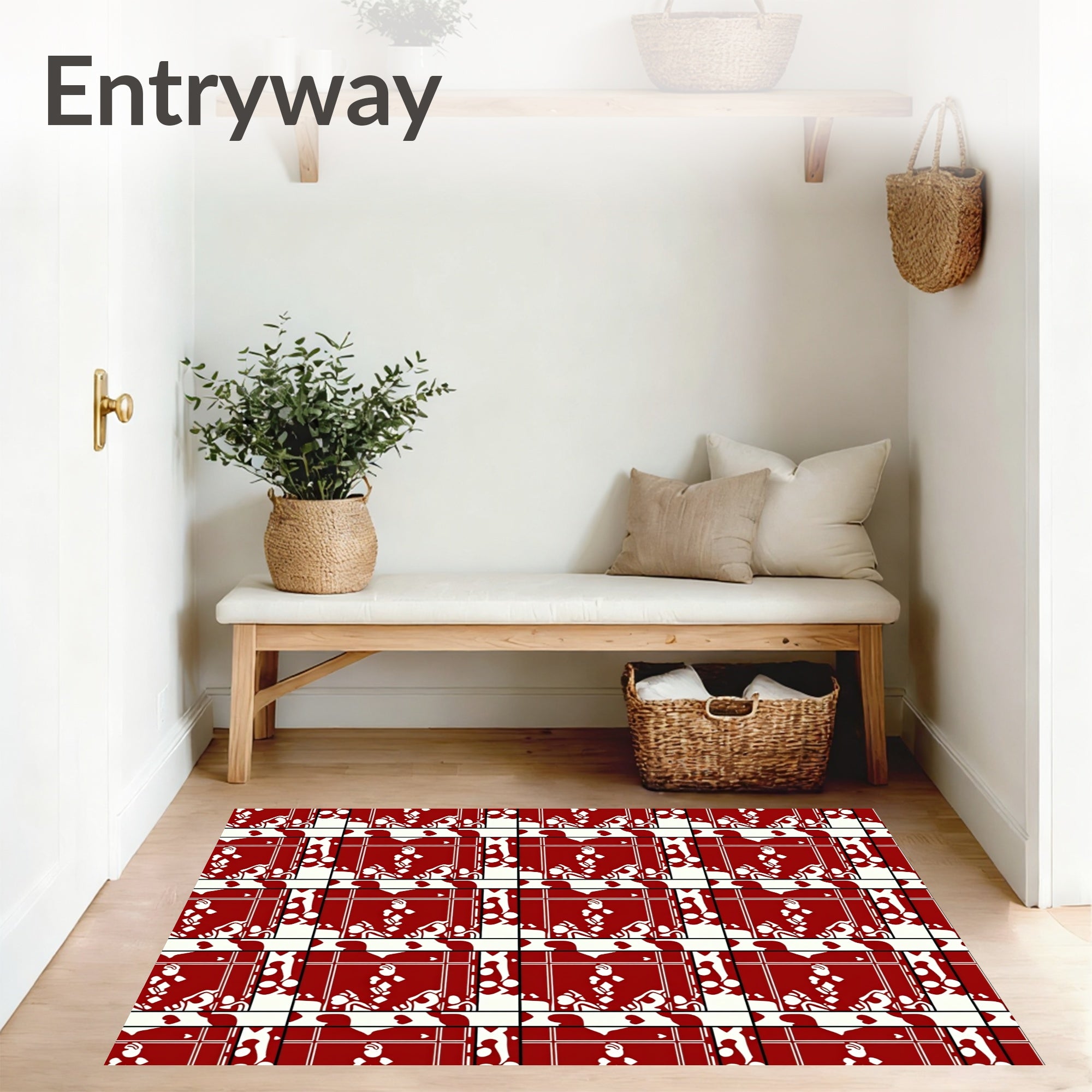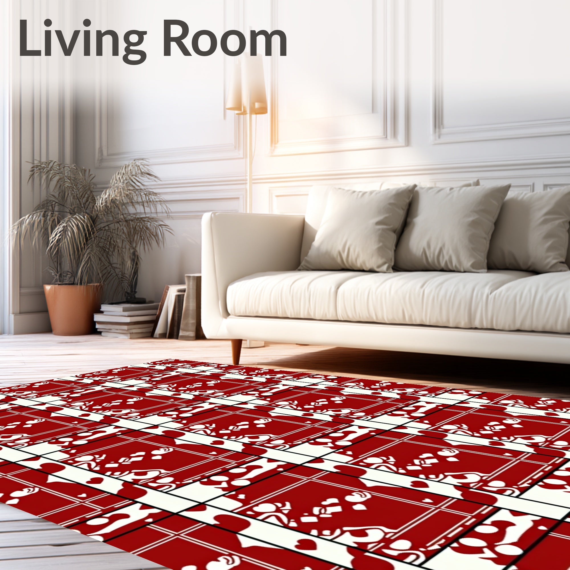 Flatwoven High Traffic Area Rug, Classic Plaid Interlocking with Nordic Details, Non Slip, Stain Resistant, Washable Area Rugs for Living Room, Bedroom (Red) Overview: