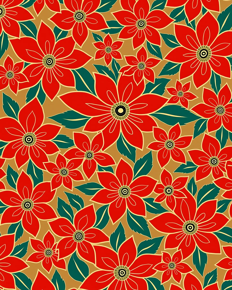 Classic Poinsettia Blossom with Traditional Winter Floral Motifs(Red)