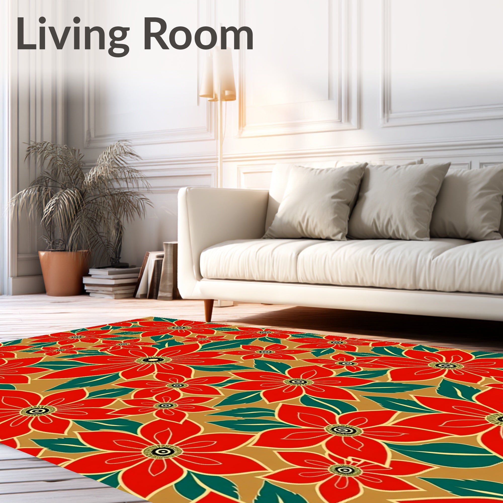 Flatwoven High Traffic Area Rug, Classic Poinsettia Blossom with Traditional Winter Floral Motifs, Non Slip, Stain Resistant, Washable Area Rugs for Living Room, Bedroom (Red) Overview: