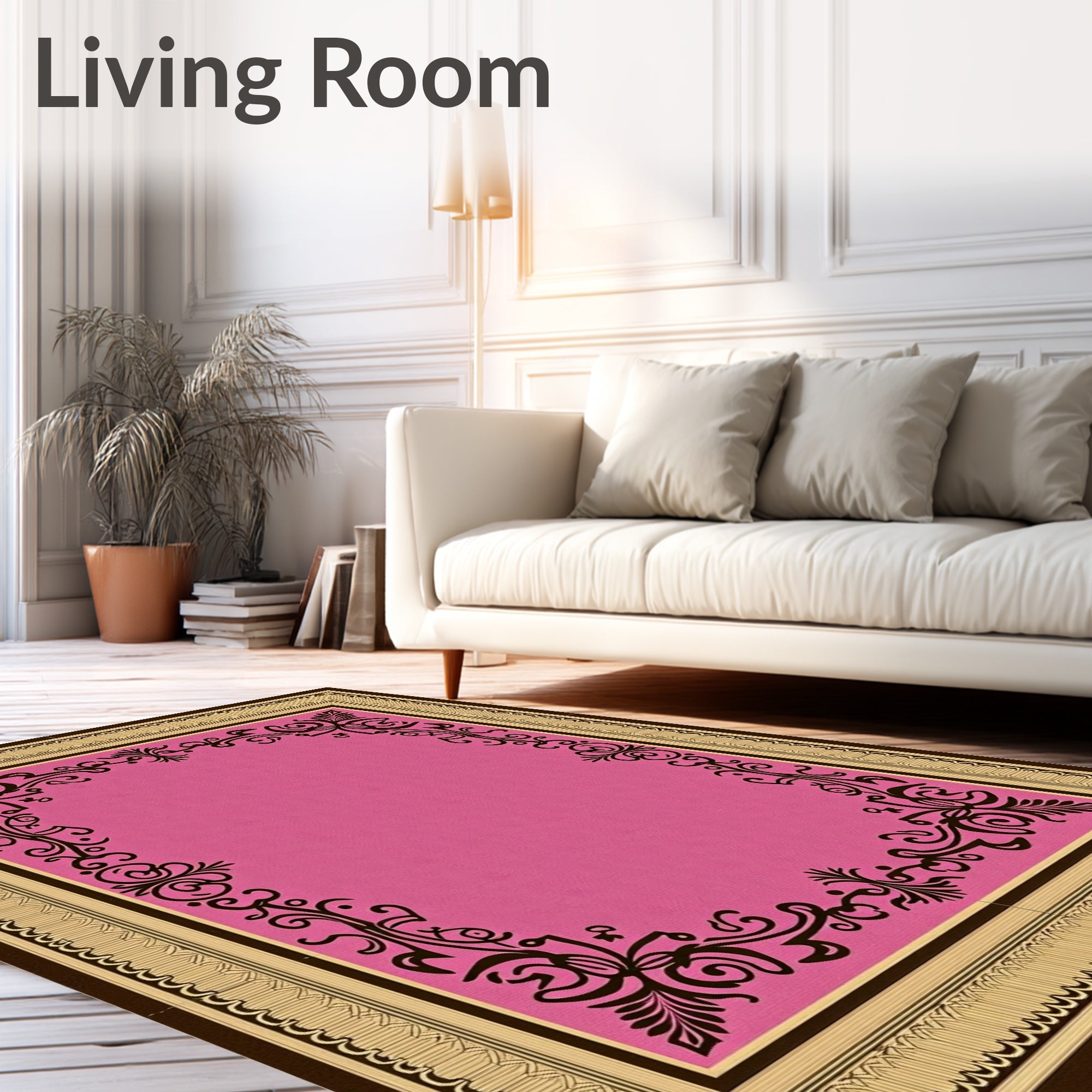 Ultra Soft Area Rug, Non Slip, Stain Resistant, Washable Area Rugs for Living Room, Bedroom, Classic Rococo Inspired Flourish with Ornamental Vine Overlay(Pink) Overview: