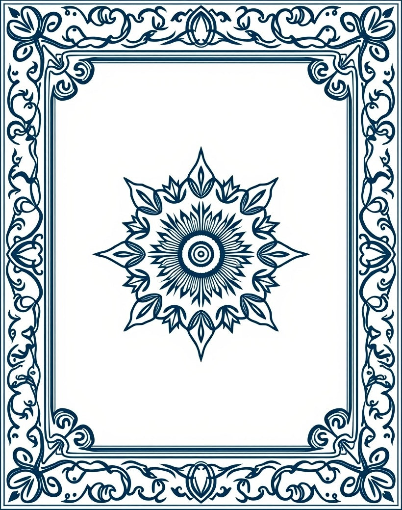 Classic Rosette Center with Scrollwork Border Detailing(Blue)