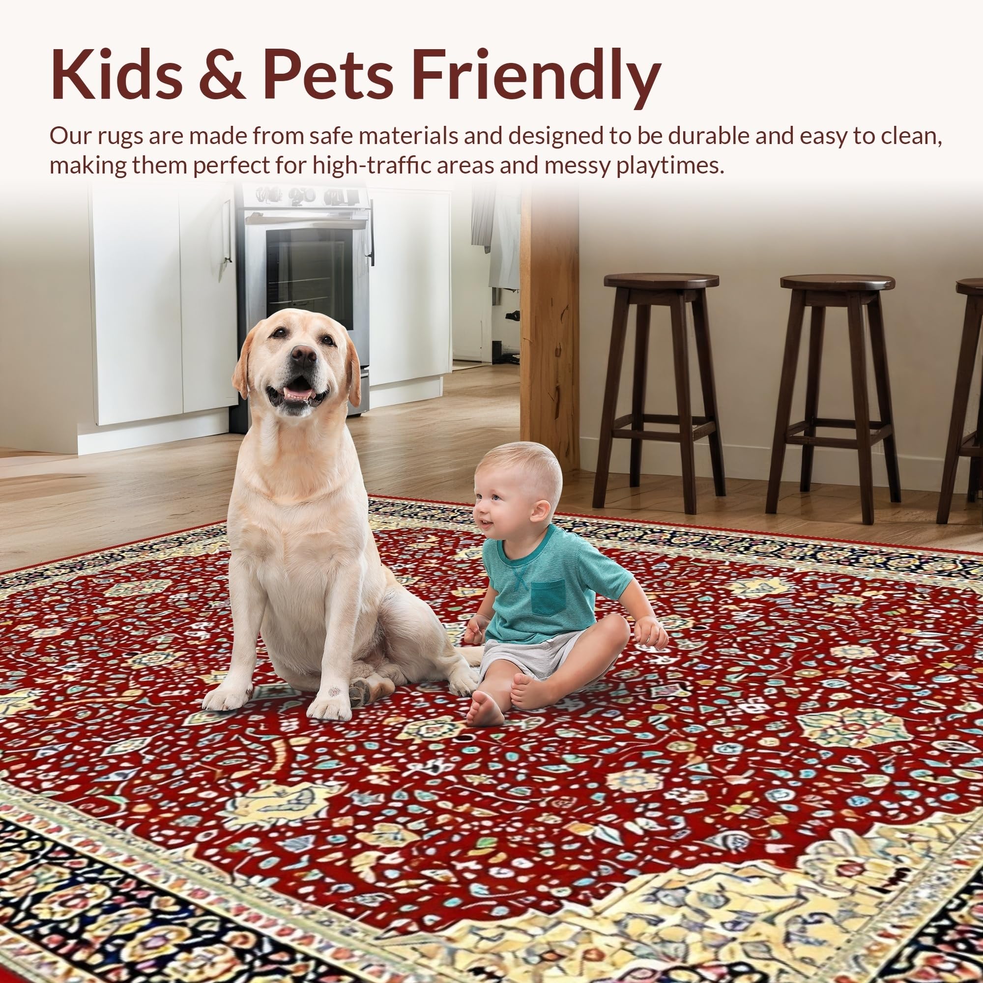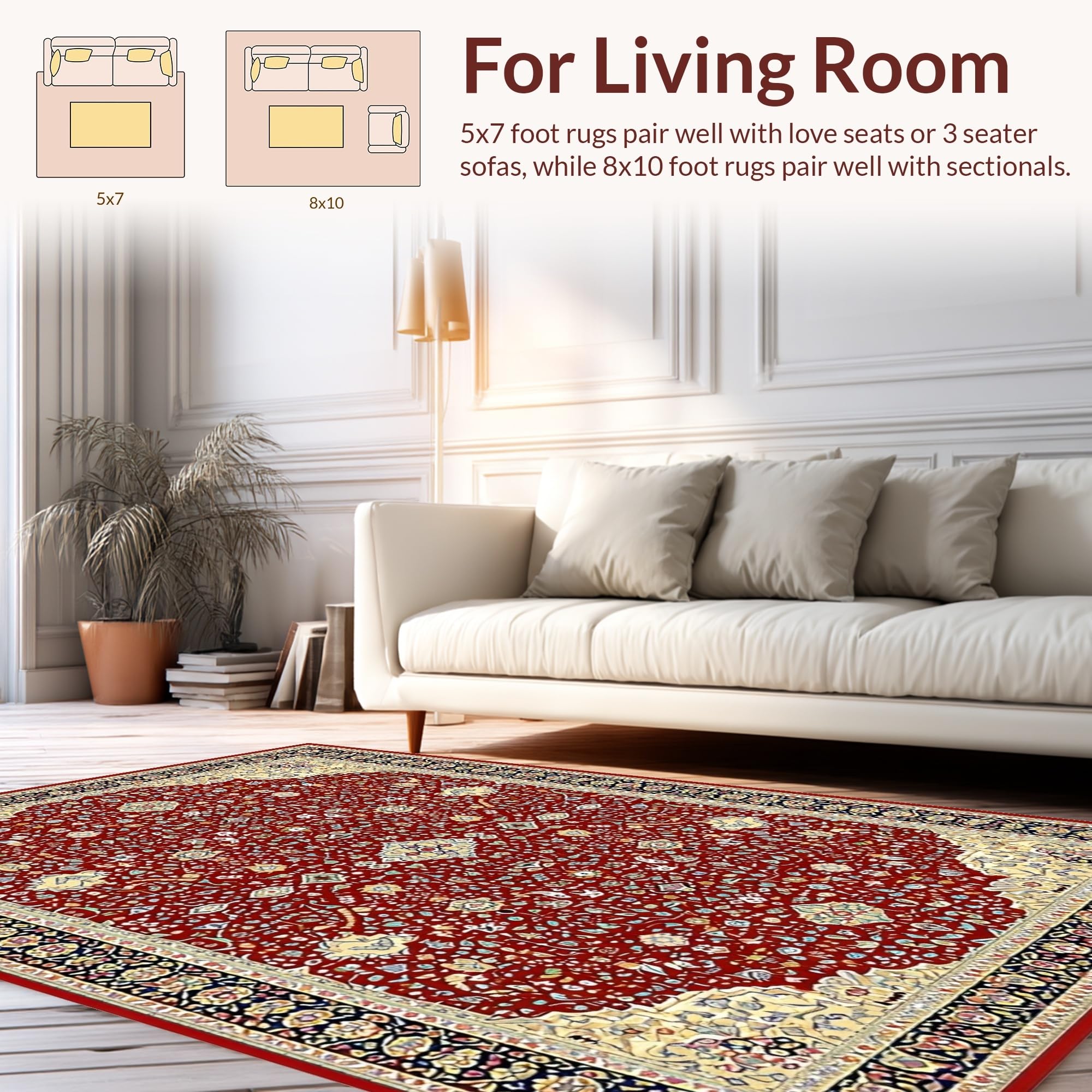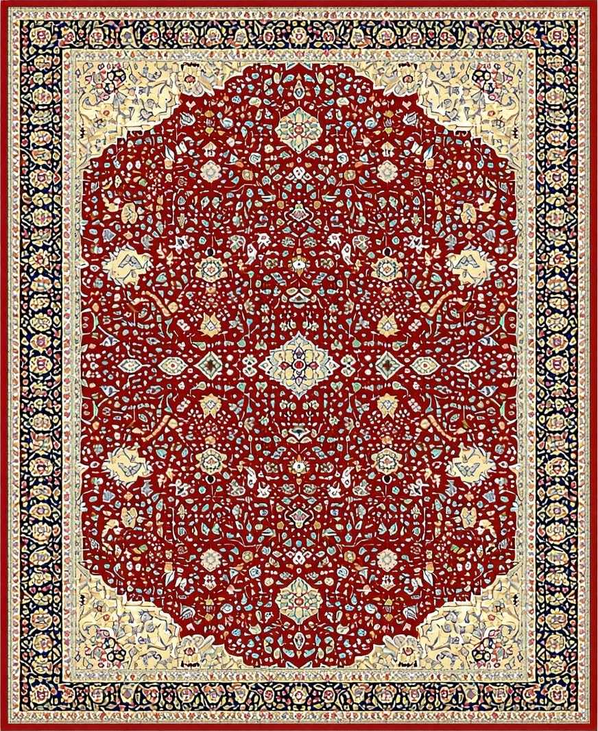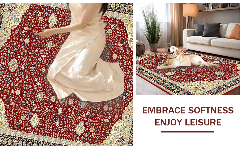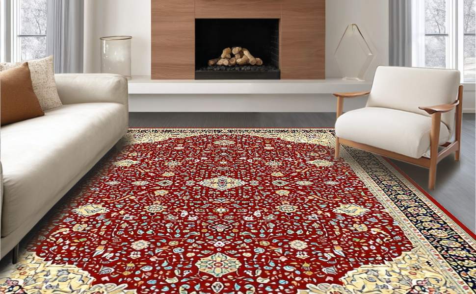 Ultra Soft Area Rug, Non Slip, Stain Resistant, Washable Area Rugs for Living Room, Bedroom, Classic Rustic Symmetrical Design(Red) Overview: