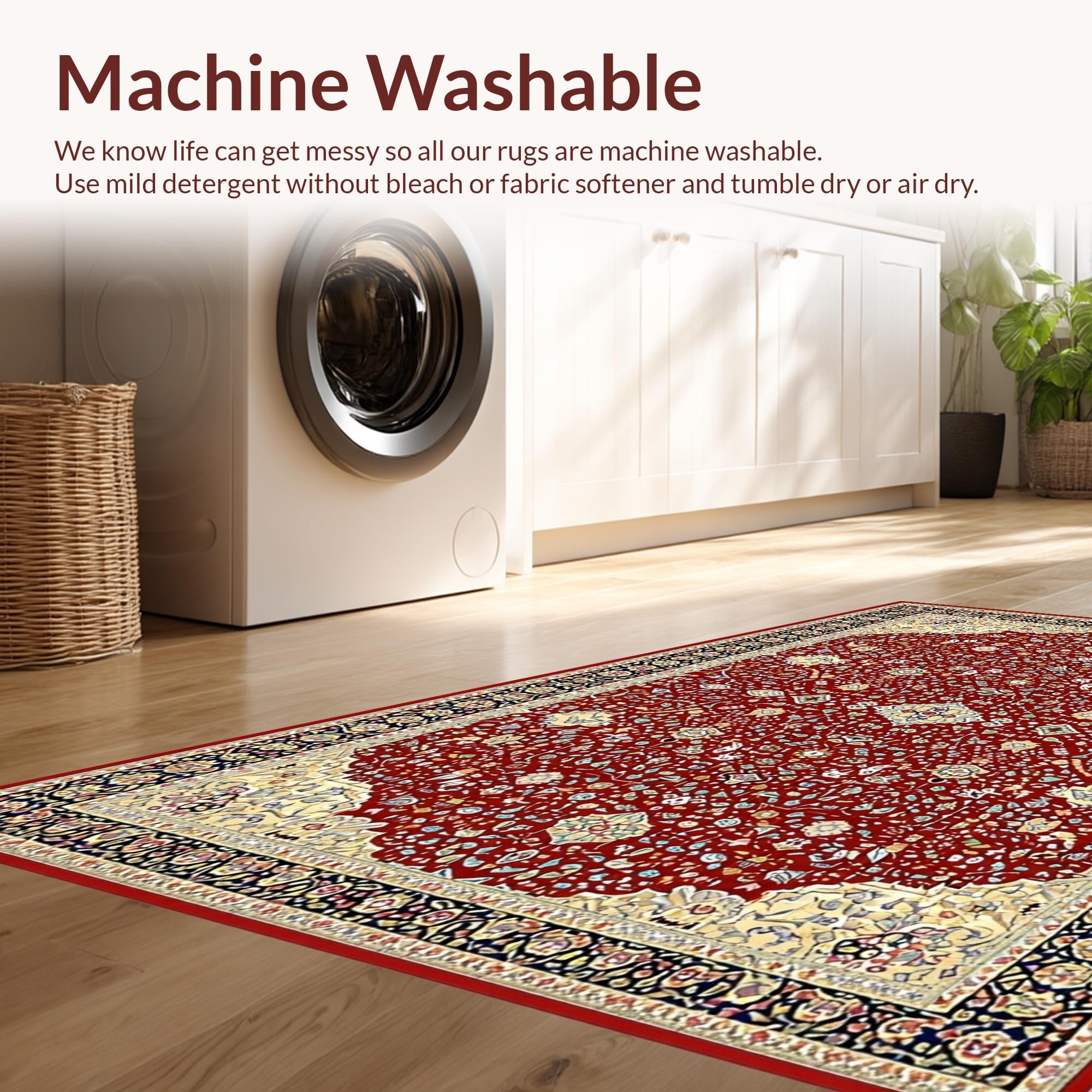 - Machine Washable: Our rugs can be easily thrown in the wash machine.