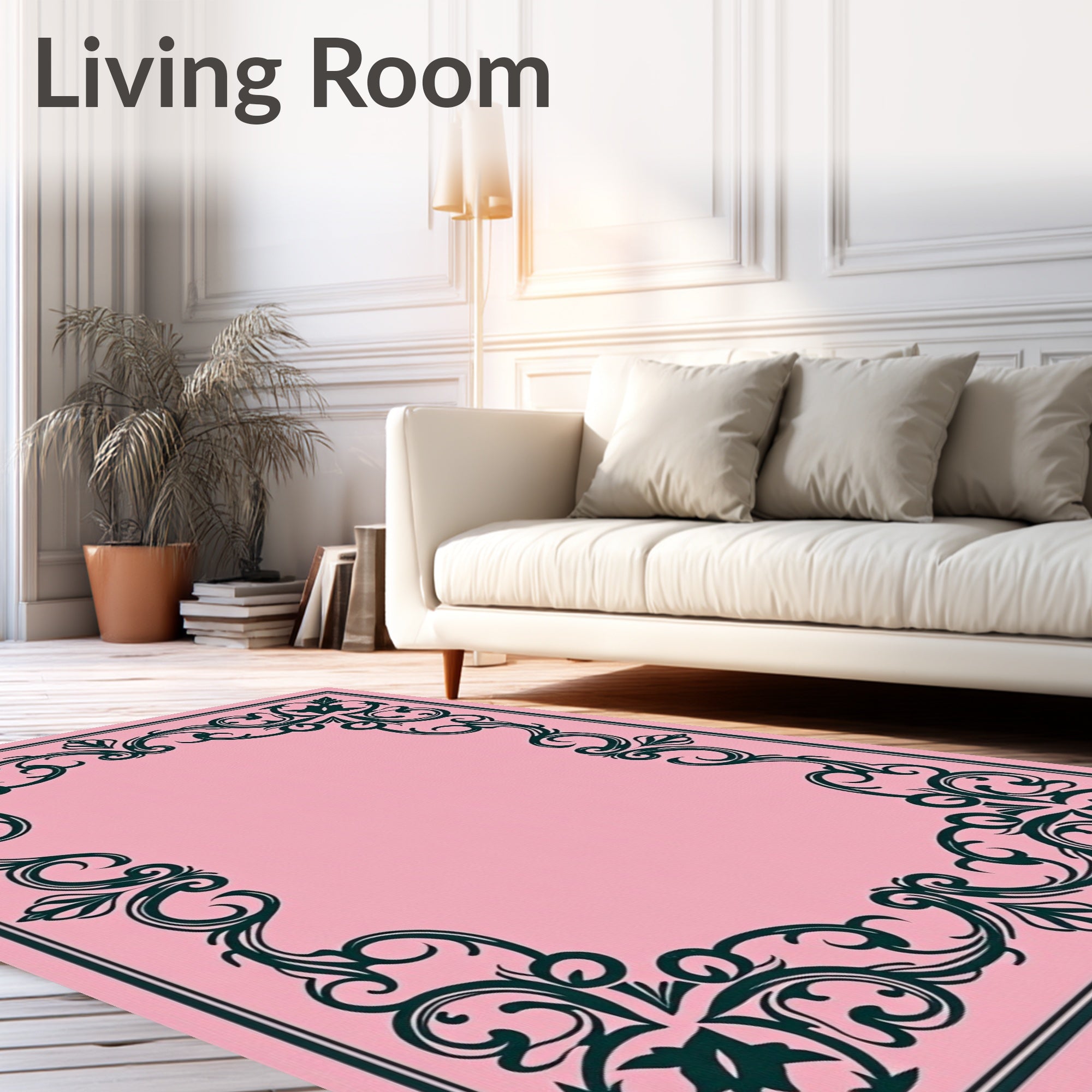 Ultra Soft Area Rug, Non Slip, Stain Resistant, Washable Area Rugs for Living Room, Bedroom, Classic Scrollwork Distressed Embellishment(Pink) Overview: