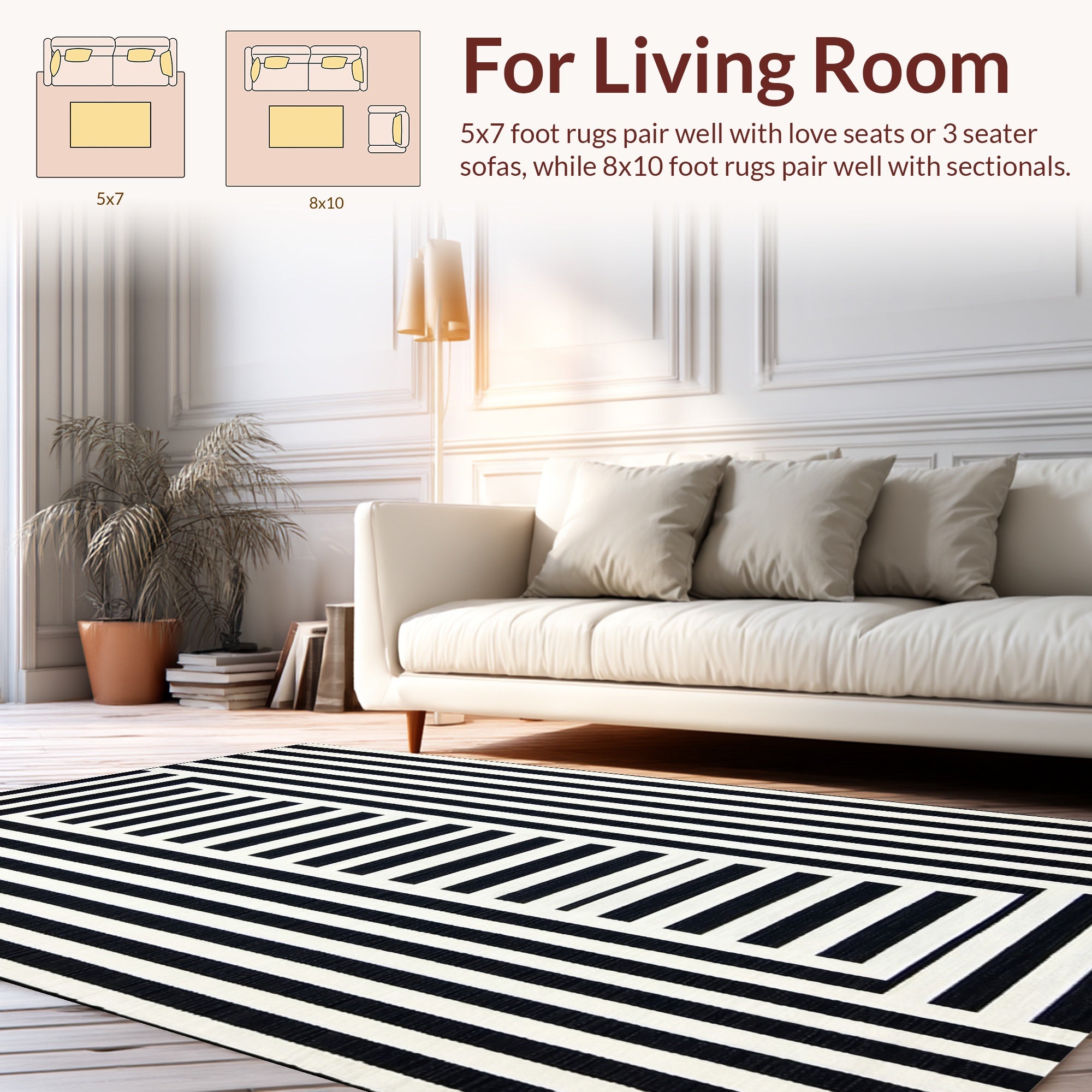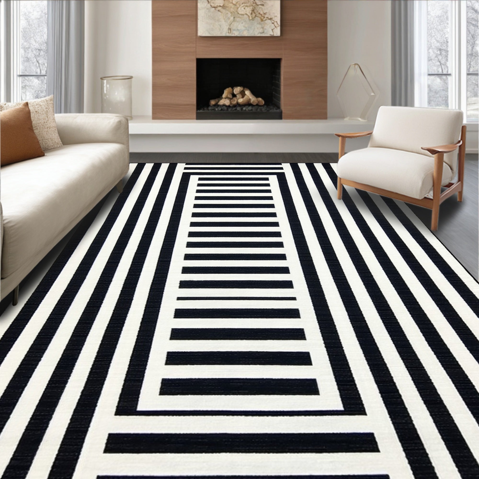 Ultra Soft Area Rug, Non Slip, Stain Resistant, Washable Area Rugs for Living Room, Bedroom, Classic Striped Area Rug(Black) Overview: