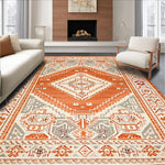 Ultra Soft Area Rug, Non Slip, Stain Resistant, Washable Area Rugs for Living Room, Bedroom, Classic Striped Rustic Charm(Orange) Overview: