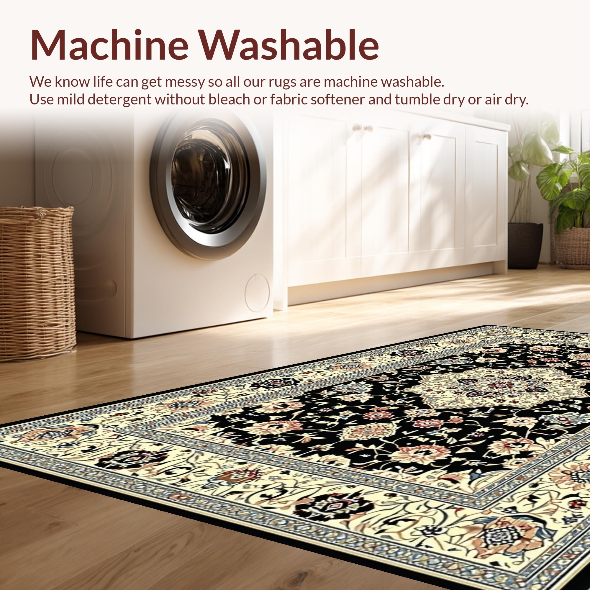 - Machine Washable: Our rugs can be easily thrown in the wash machine.
