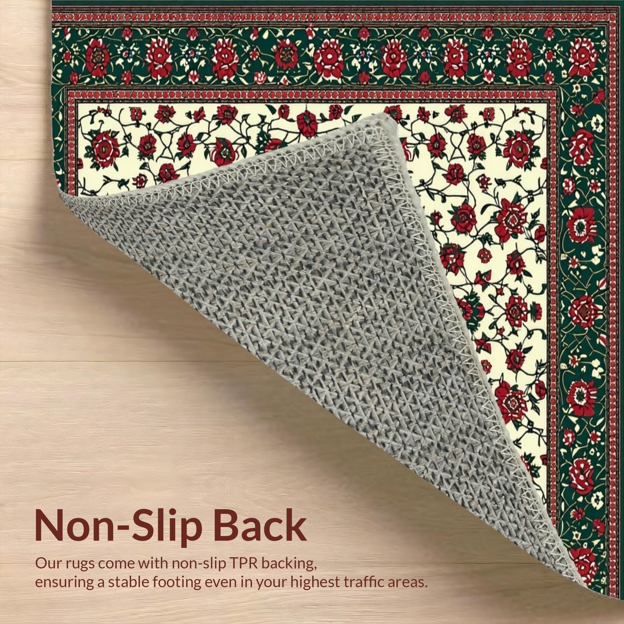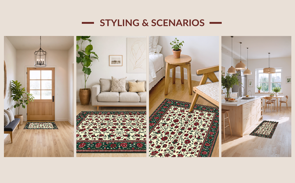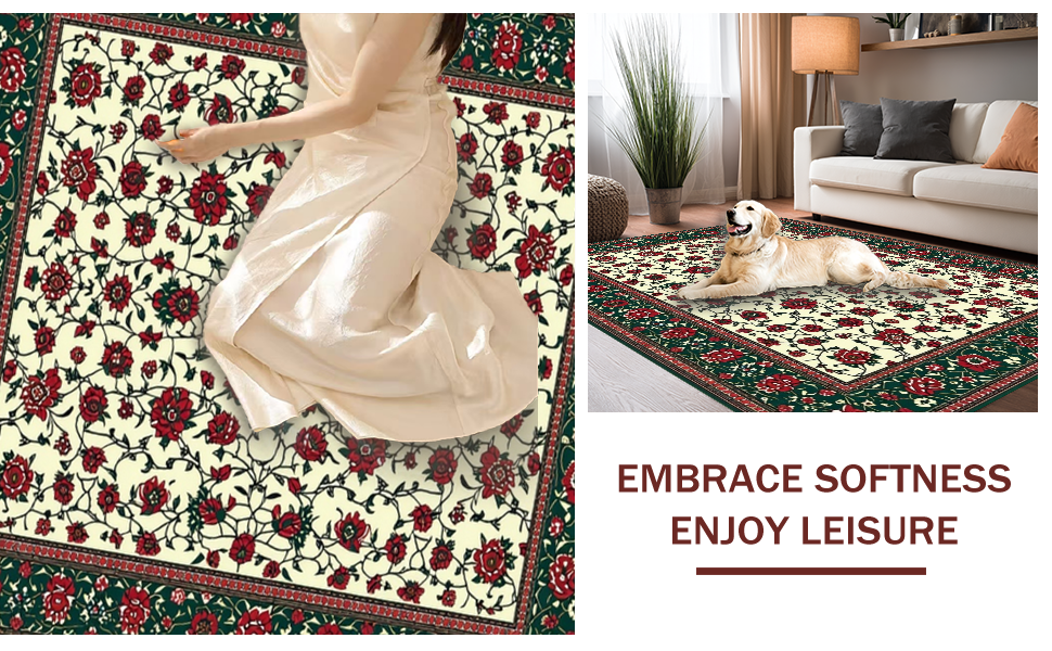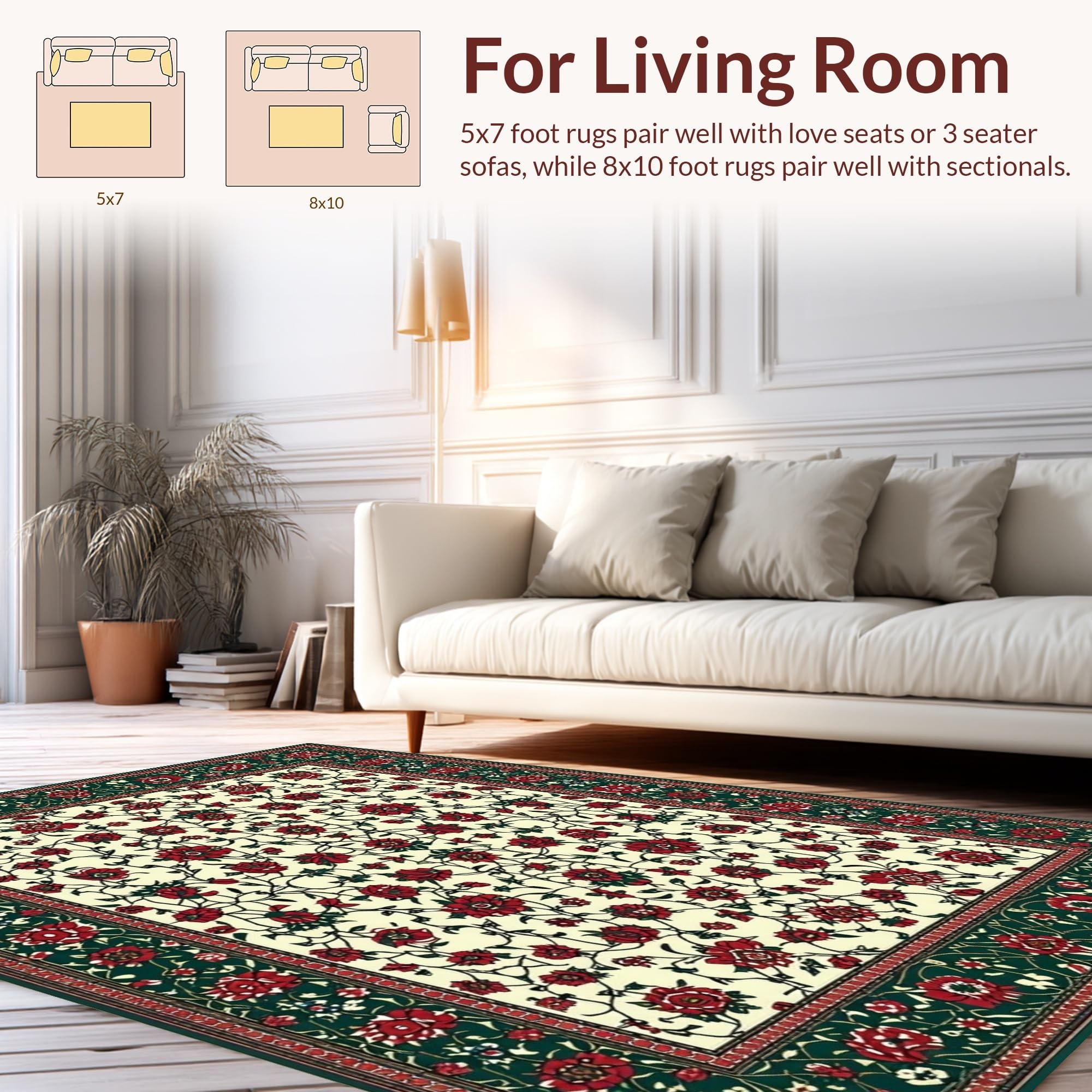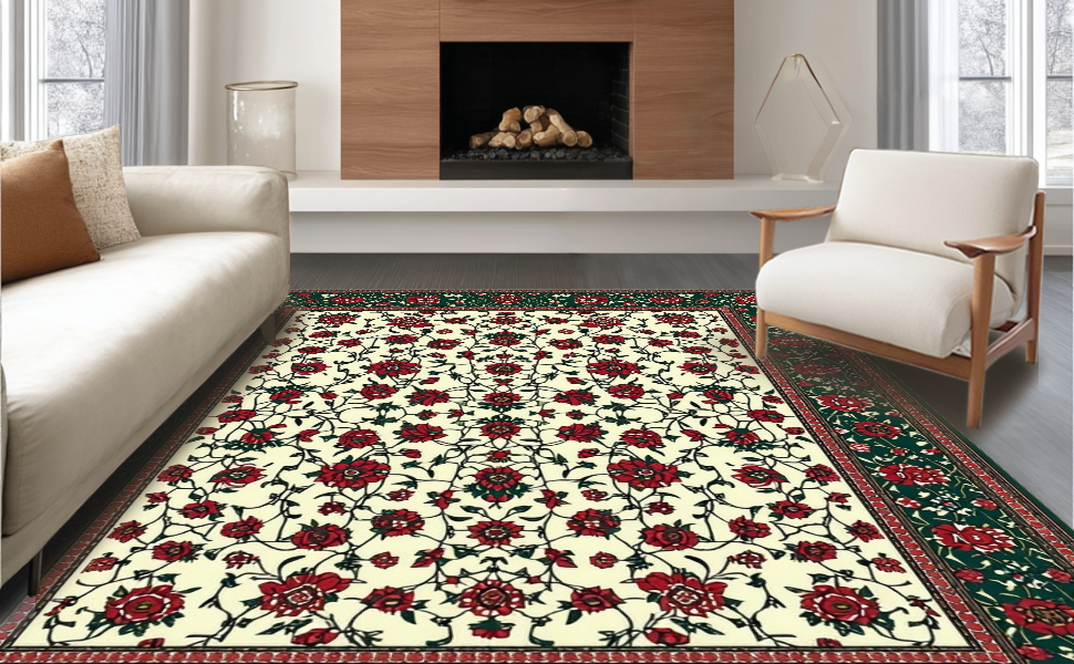 Ultra Soft Area Rug, Non Slip, Stain Resistant, Washable Area Rugs for Living Room, Bedroom, Classic Traditional Artful Aesthetic(Beige) Overview: