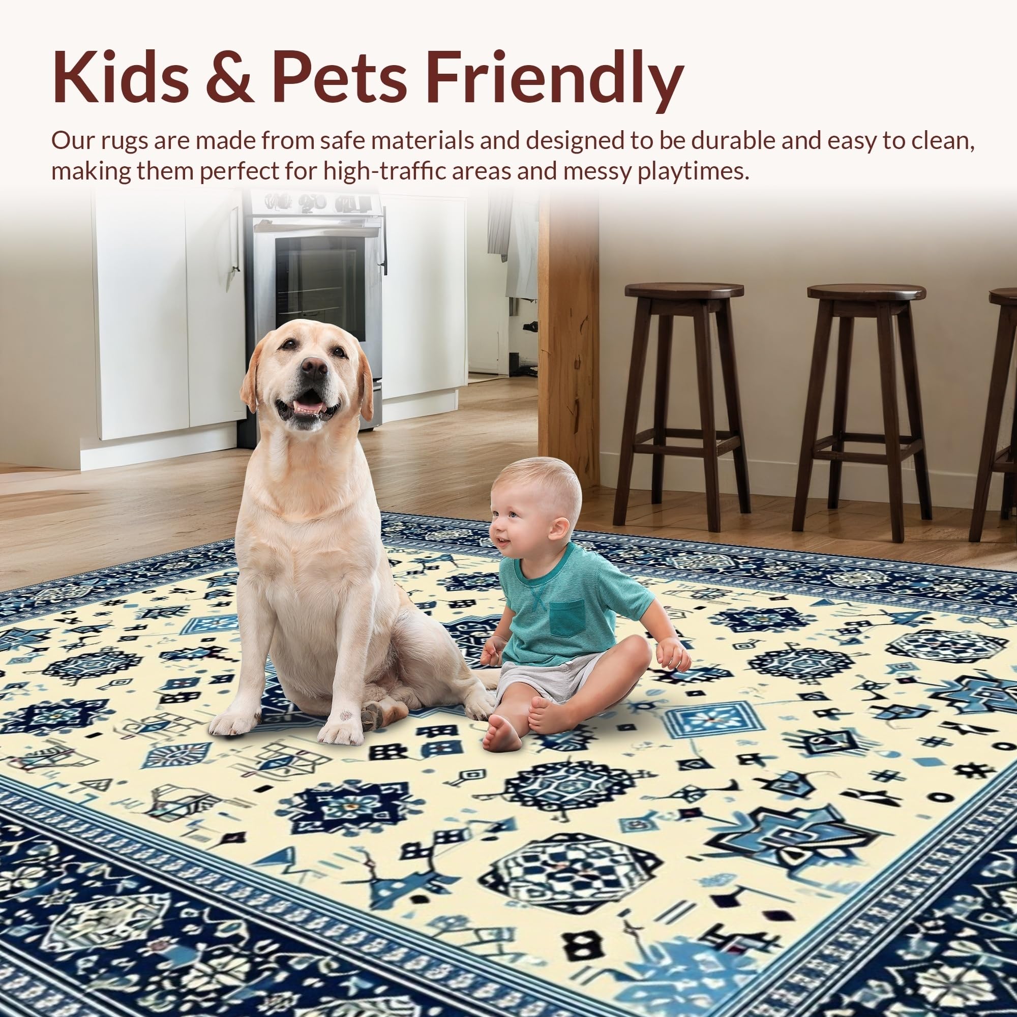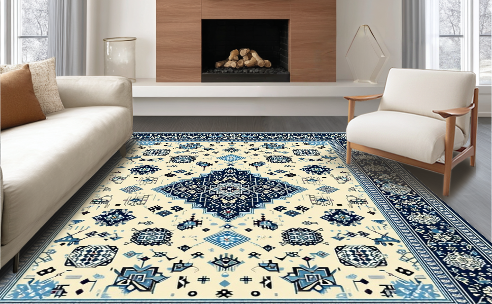 Ultra Soft Area Rug, Non Slip, Stain Resistant, Washable Area Rugs for Living Room, Bedroom, Classic Transitional Abstract Style(Beige) Overview: