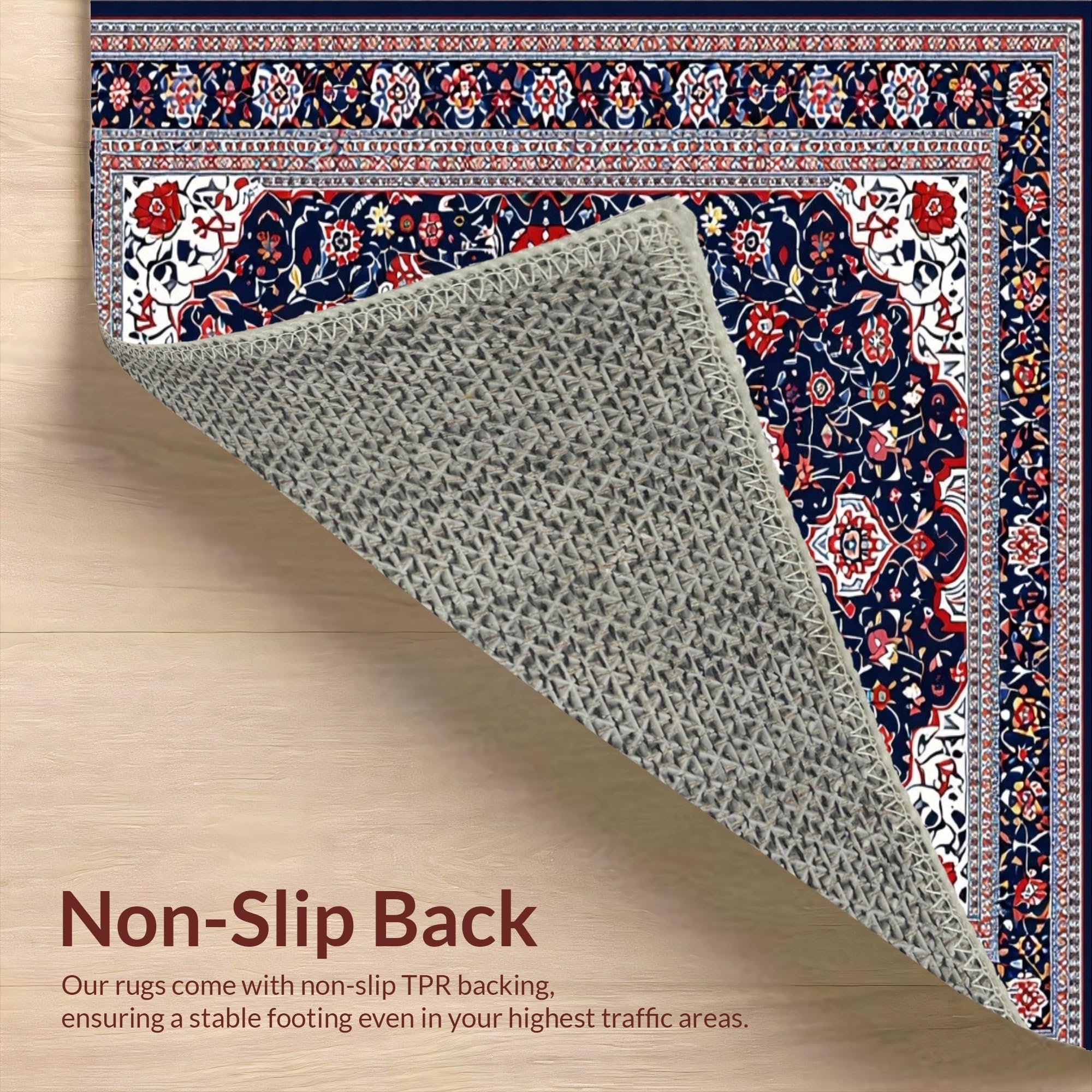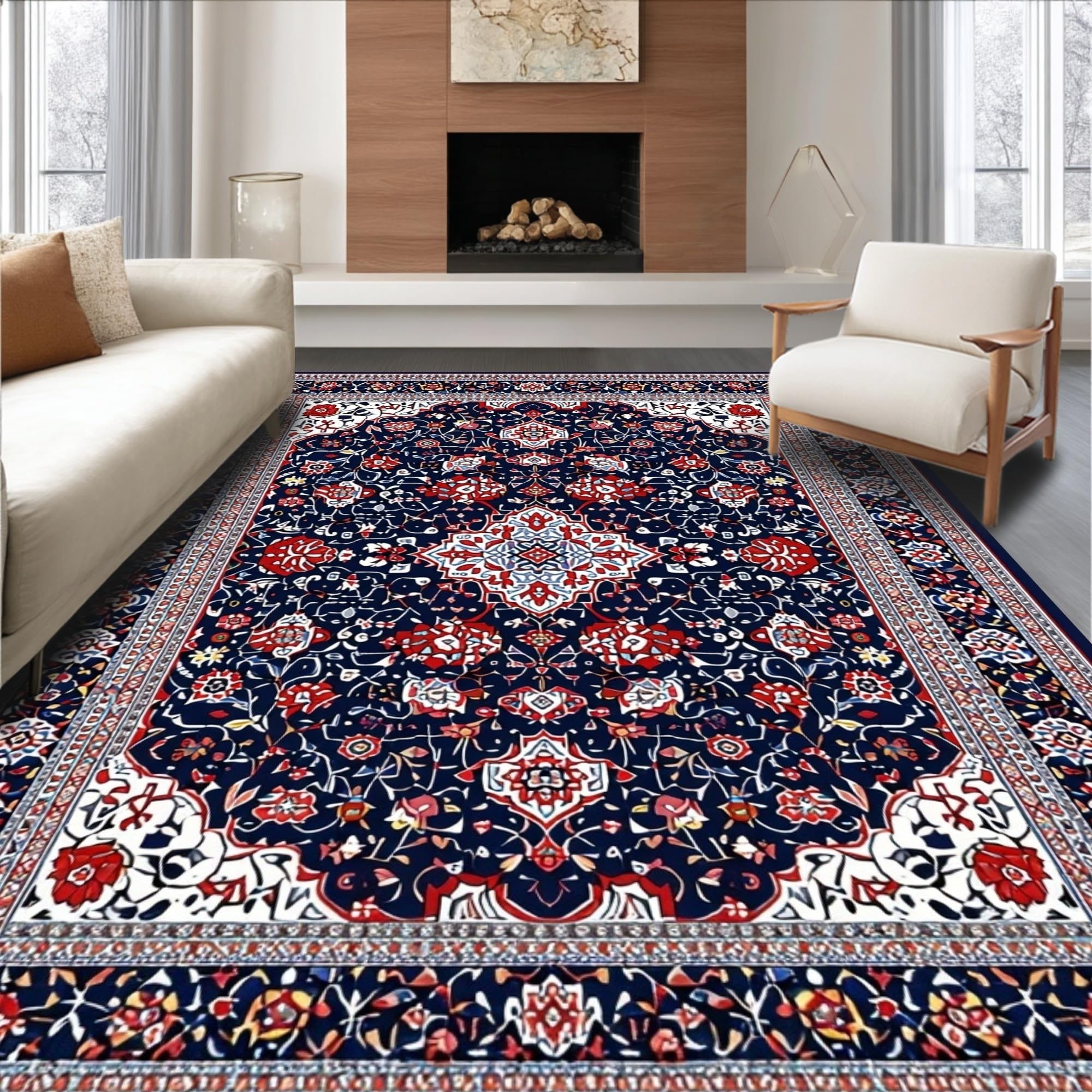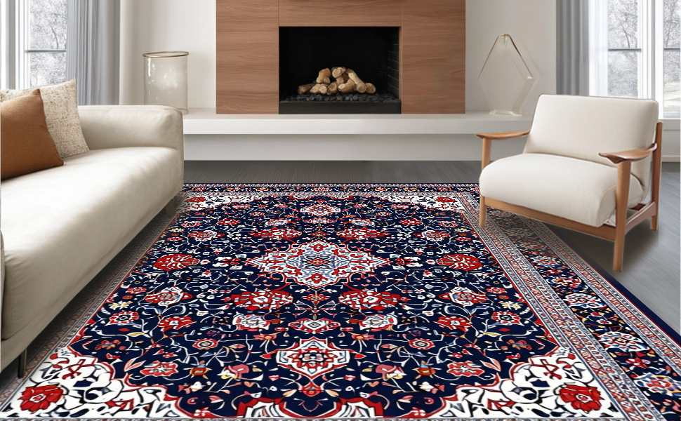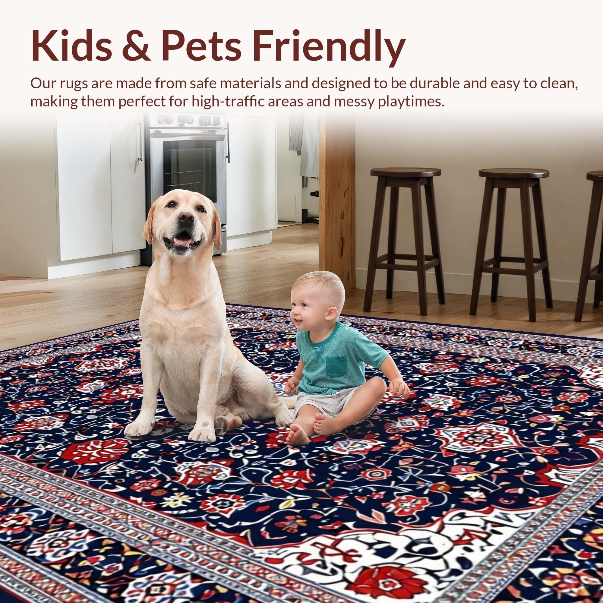 Ultra Soft Area Rug, Non Slip, Stain Resistant, Washable Area Rugs for Living Room, Bedroom, Classic Vintage Tiled Style(Black) Overview:
