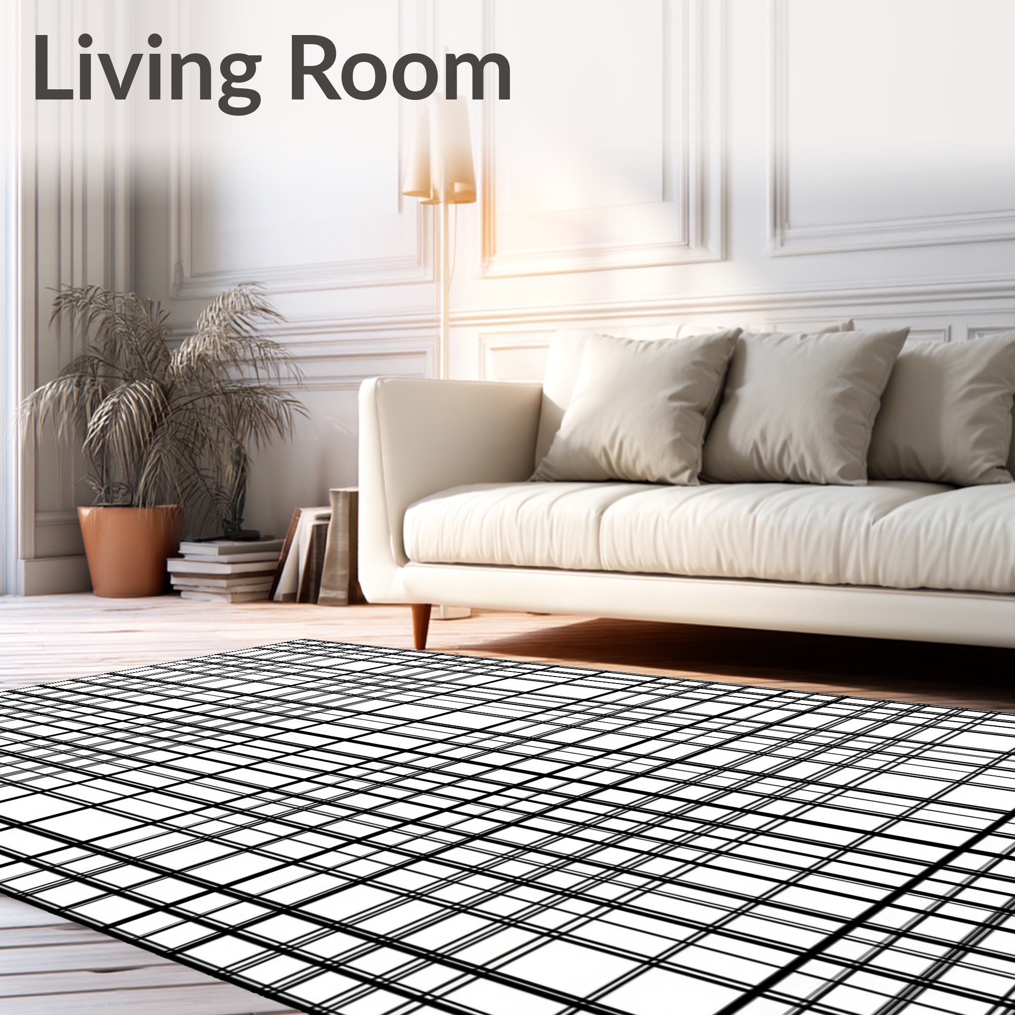 Flatwoven High Traffic Area Rug, Classic Windowpane Plaid with Subtle Chevron Festive Detailing, Non Slip, Stain Resistant, Washable Area Rugs for Living Room, Bedroom (Black) Overview: