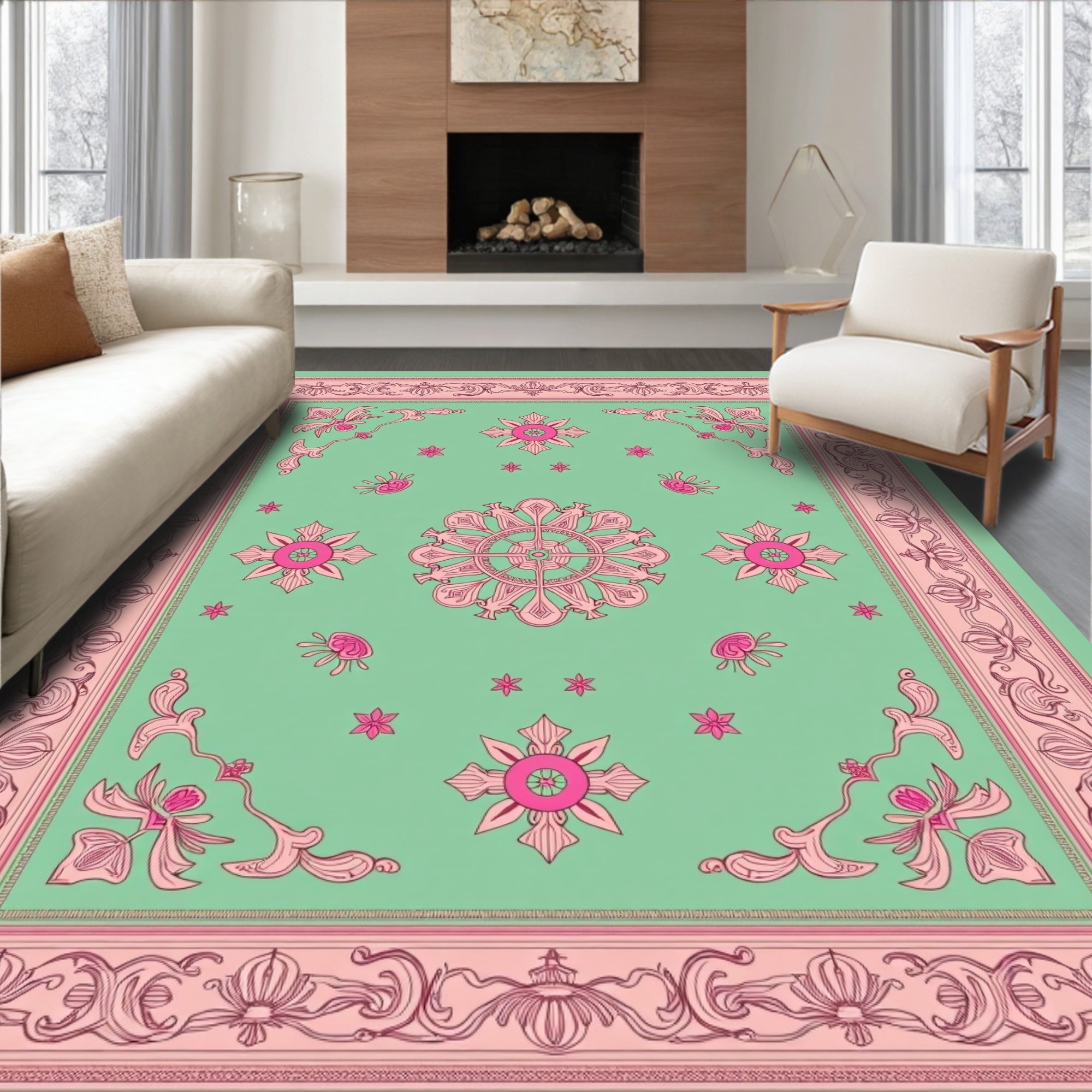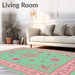 Ultra Soft Area Rug, Non Slip, Stain Resistant, Washable Area Rugs for Living Room, Bedroom, Classical Ornamental Jacquard Dynasty Treasure(Green) Overview: