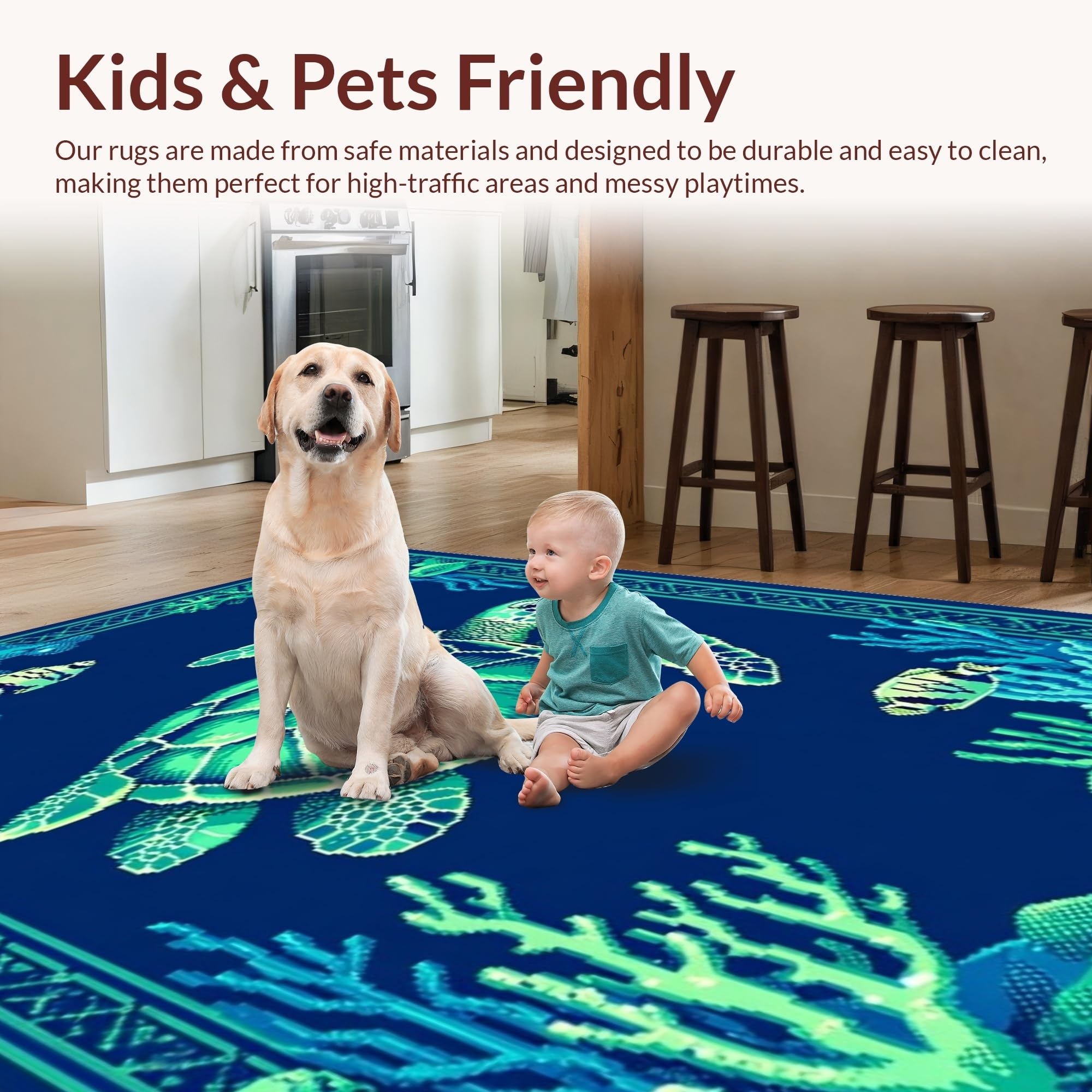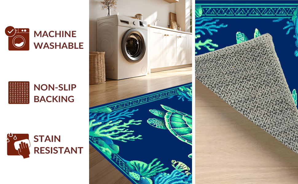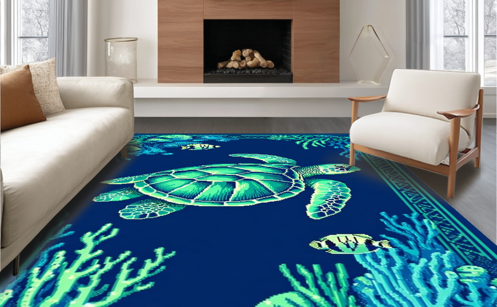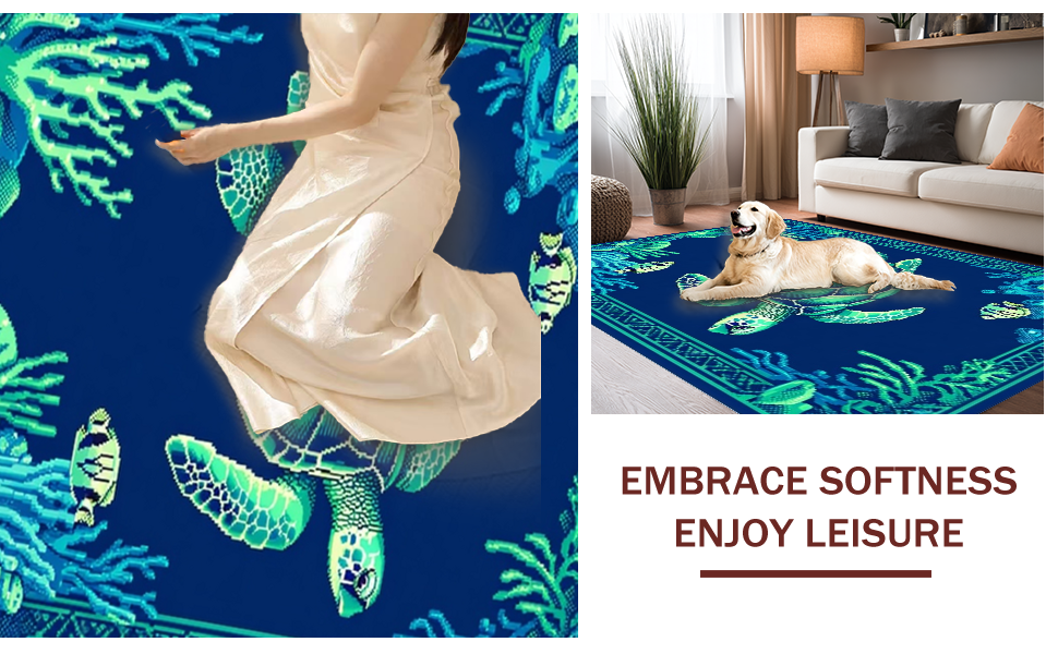 Ultra Soft Area Rug, Non Slip, Stain Resistant, Washable Area Rugs for Living Room, Bedroom, Coastal Coral Reef Aesthetic(Blue) Overview: