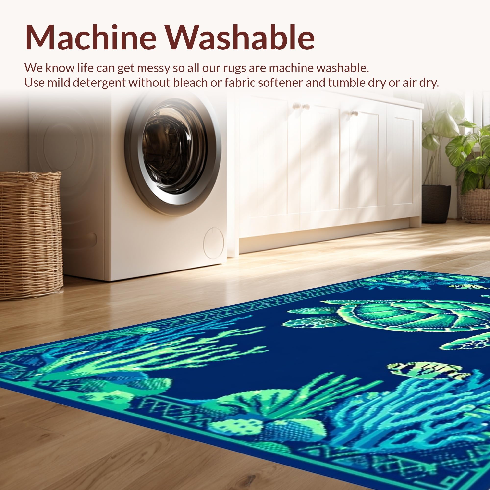 - Machine Washable: Our rugs can be easily thrown in the wash machine.