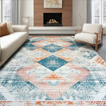 Flatwoven High Traffic Area Rug, Coastal Distressed Diam, Non Slip, Stain Resistant, Washable Area Rugs for Living Room, Bedroom (Orange) Overview: