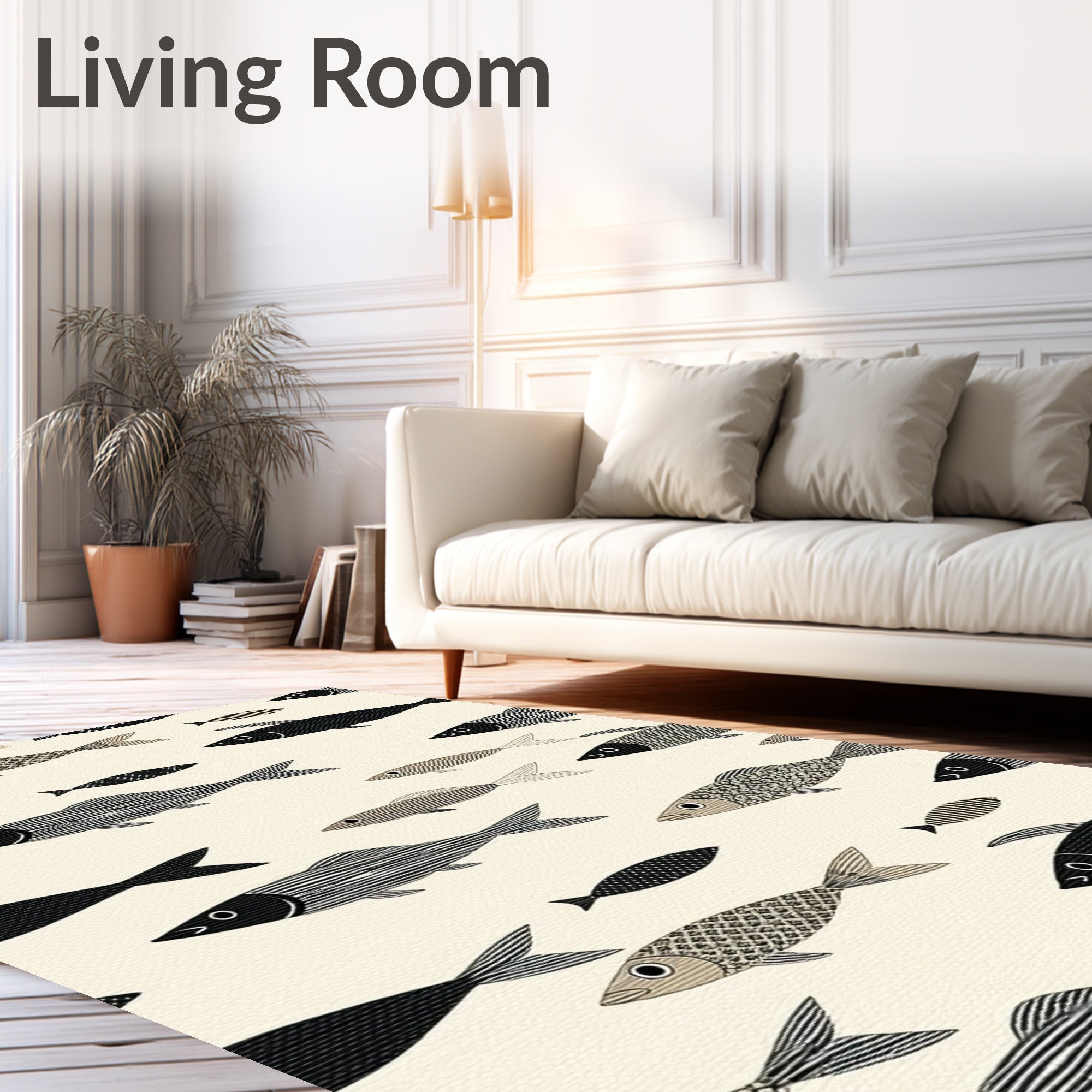 Ultra Soft Area Rug, Non Slip, Stain Resistant, Washable Area Rugs for Living Room, Bedroom, Coastal Fish Area Ocean Breeze Design(Beige) Overview:
