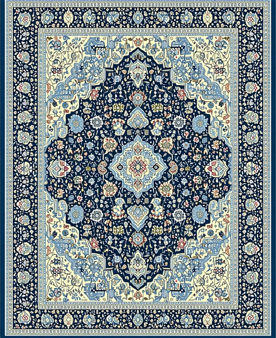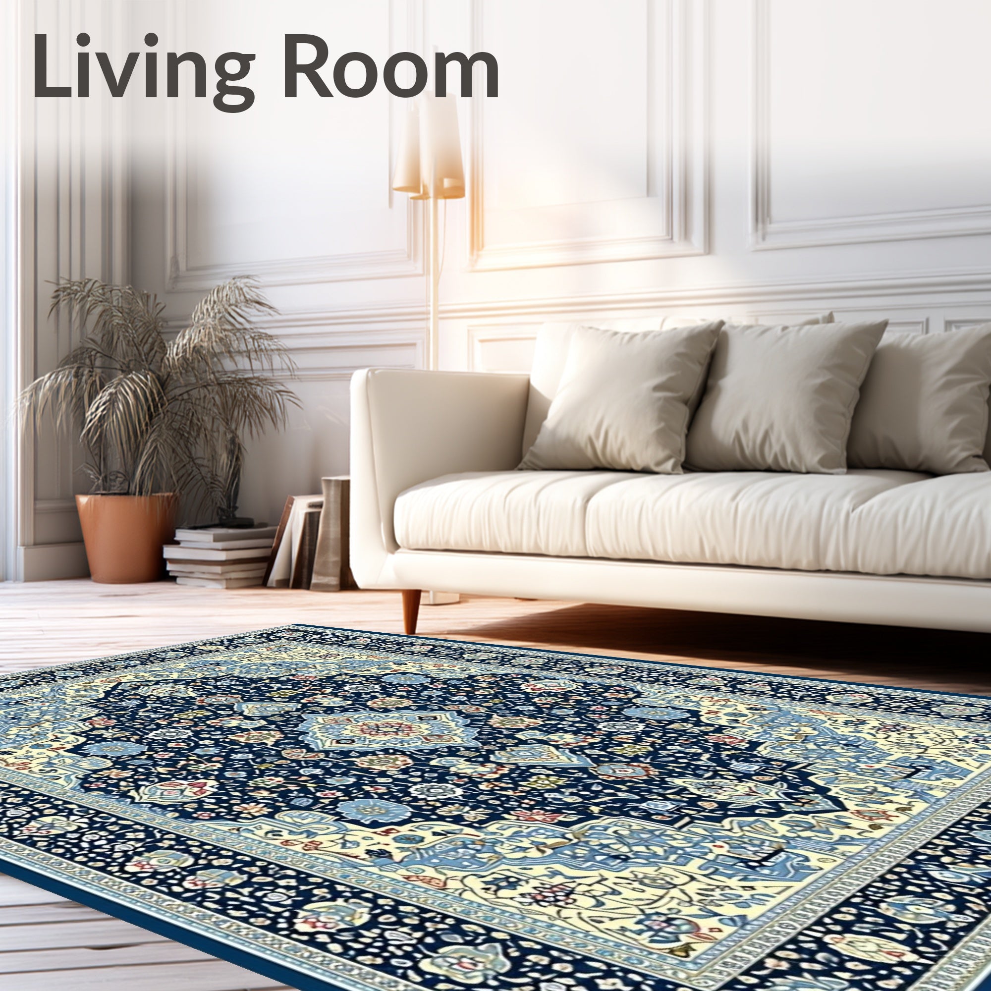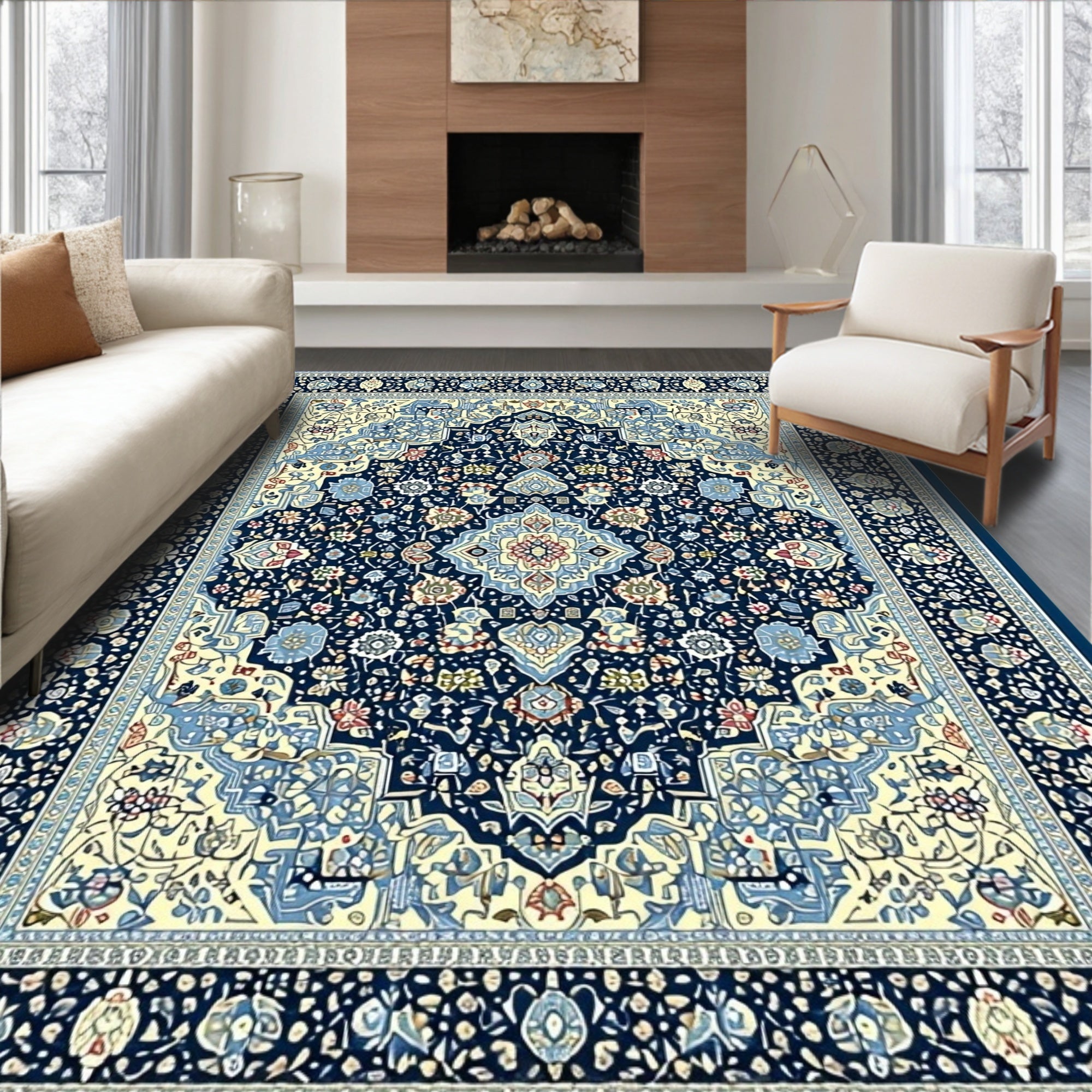 Ultra Soft Area Rug, Non Slip, Stain Resistant, Washable Area Rugs for Living Room, Bedroom, Coastal Floral Medallion Area Navy Beige Easy Care(Blue) Overview: