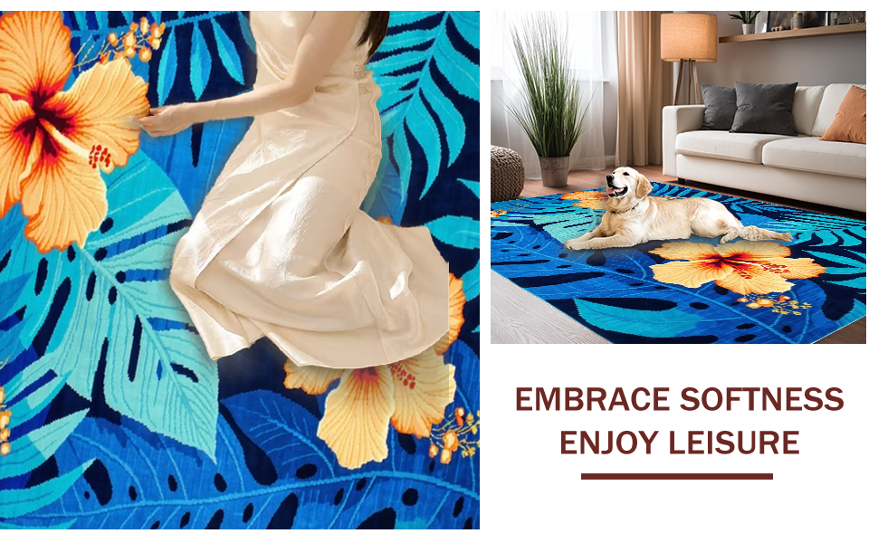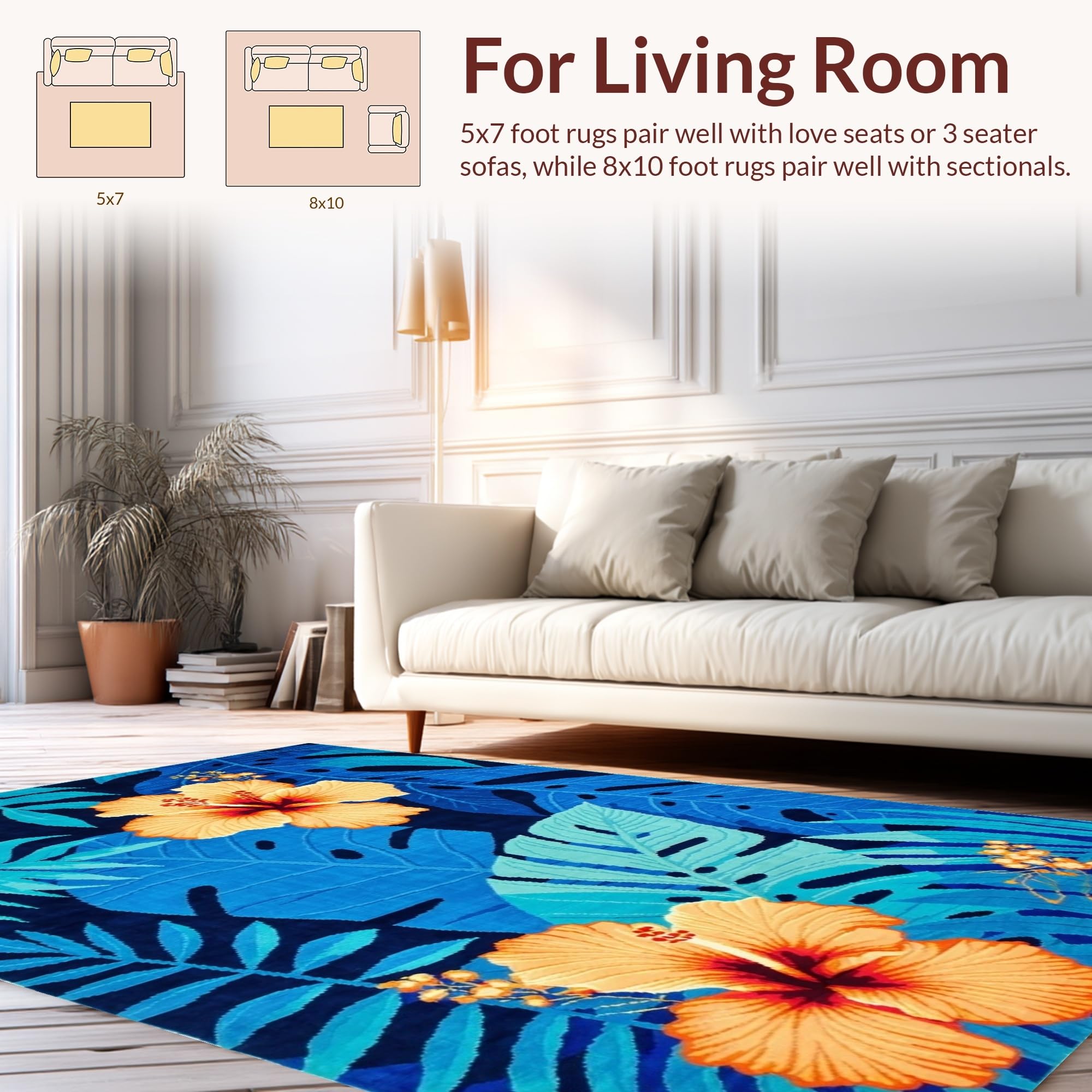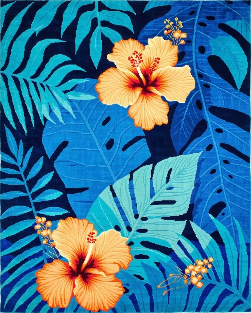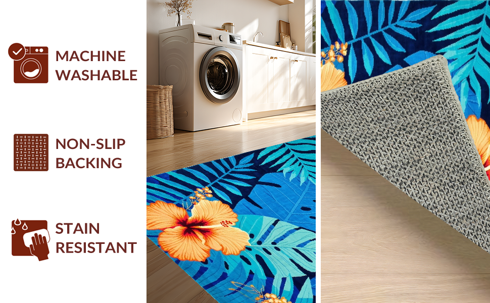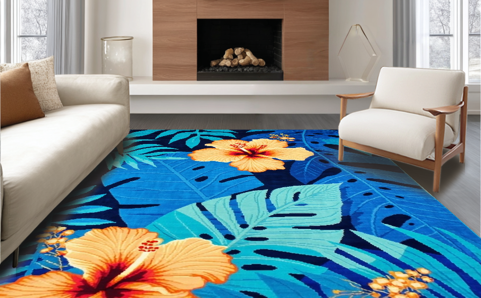 Ultra Soft Area Rug, Non Slip, Stain Resistant, Washable Area Rugs for Living Room, Bedroom, Coastal Inspired Leafy Design(Blue) Overview: