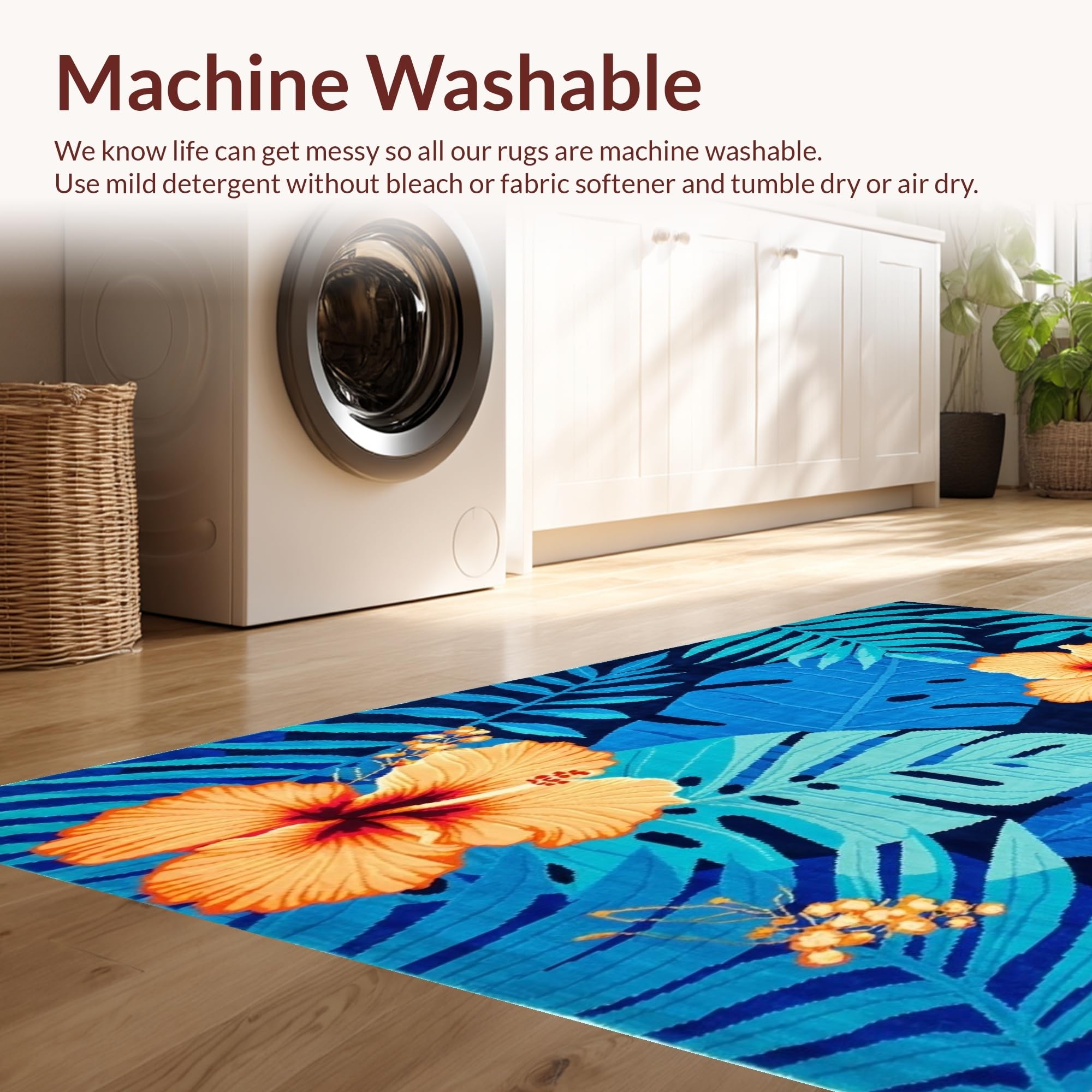 - Machine Washable: Our rugs can be easily thrown in the wash machine.