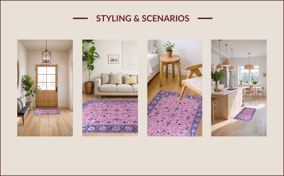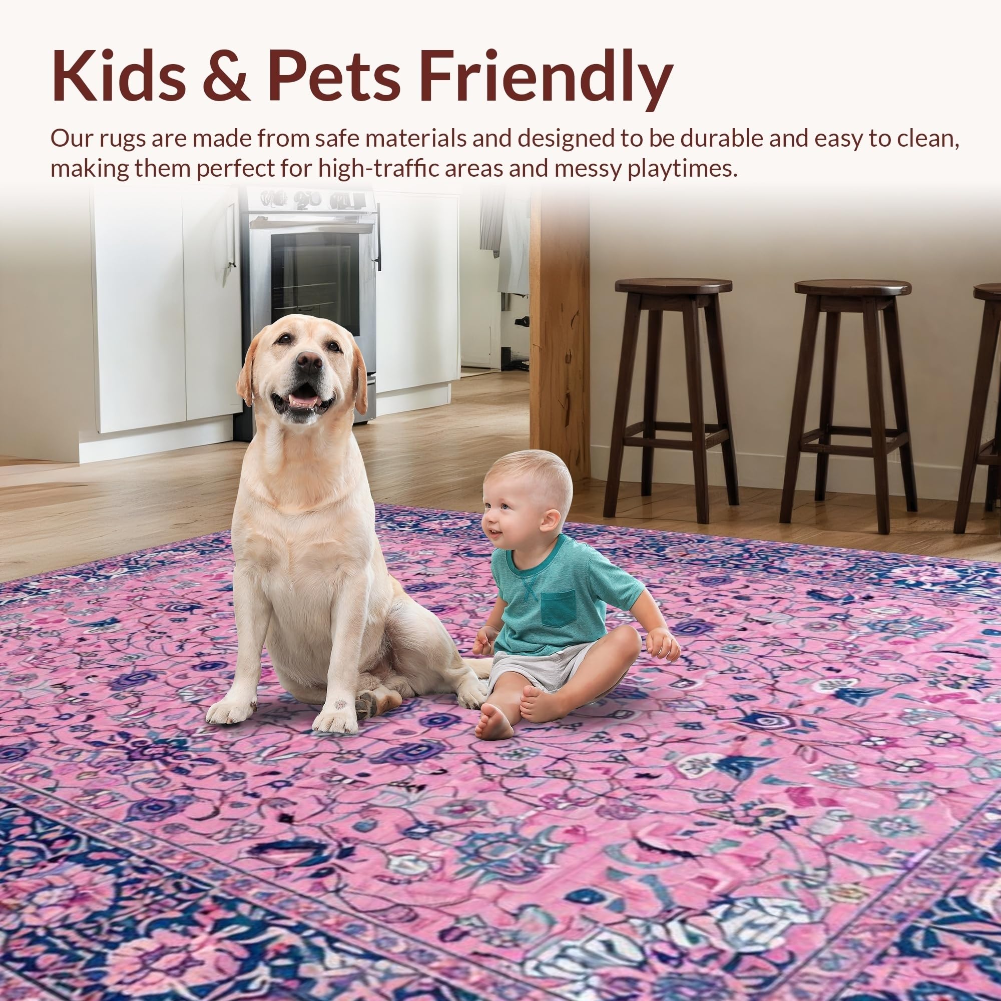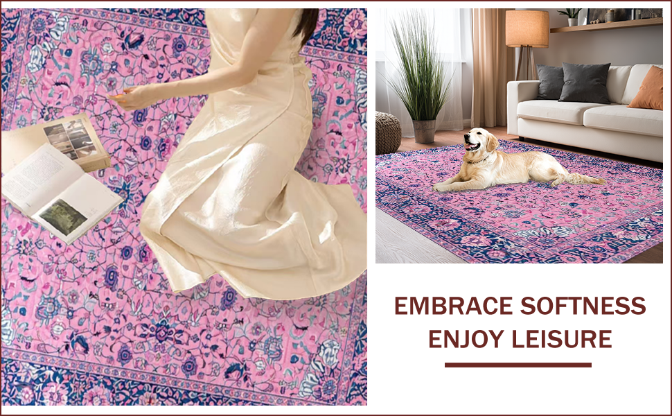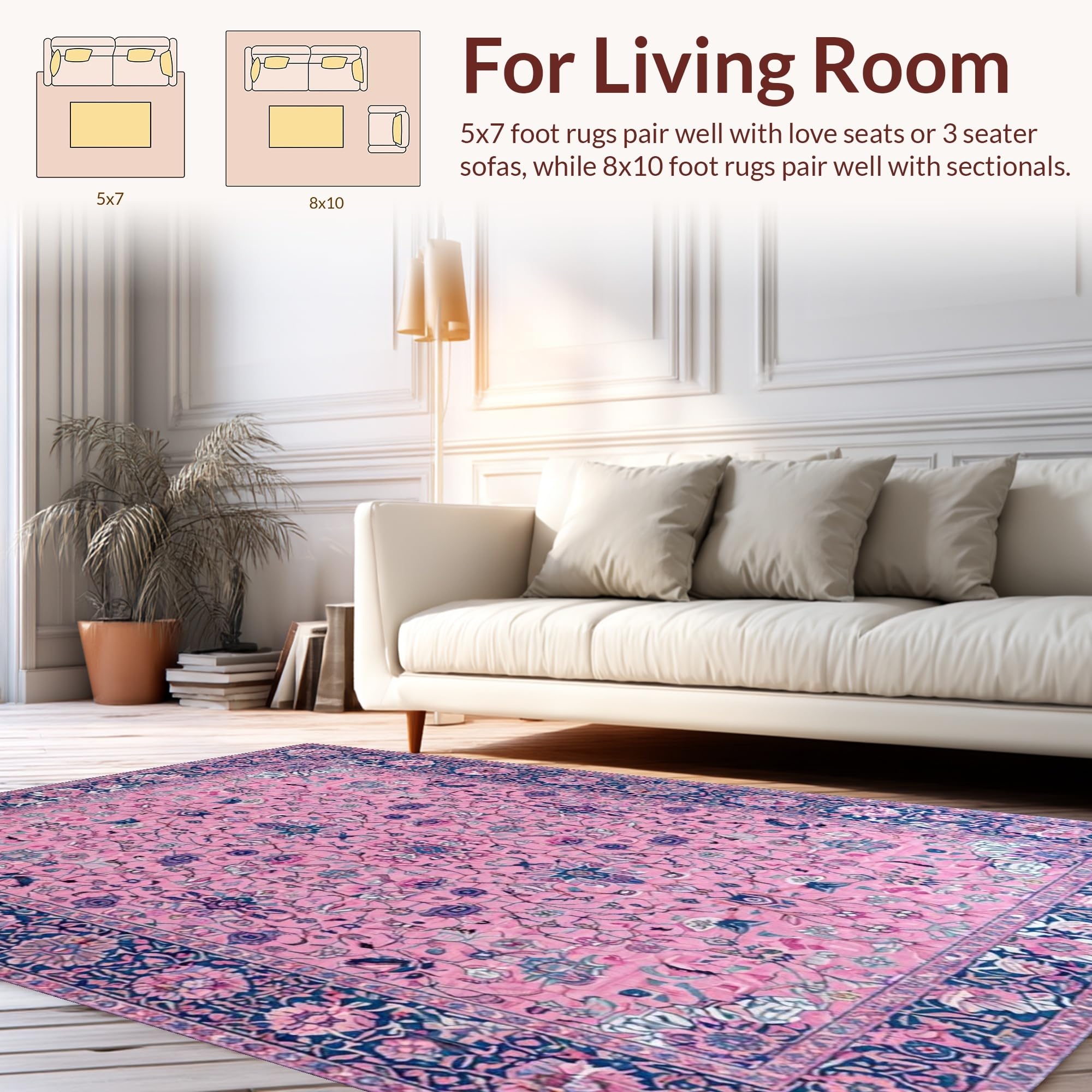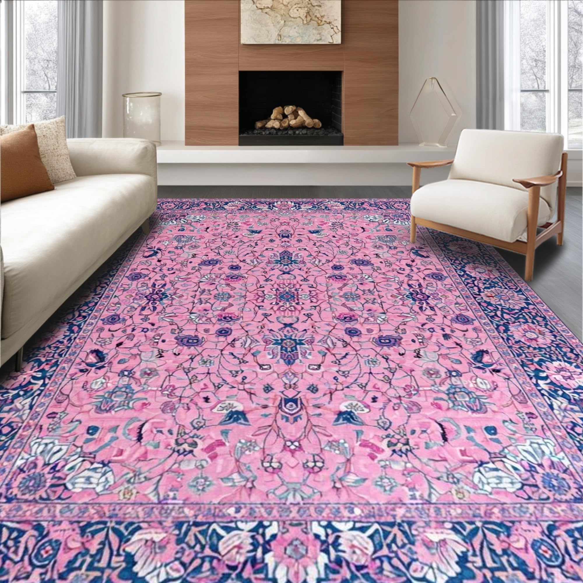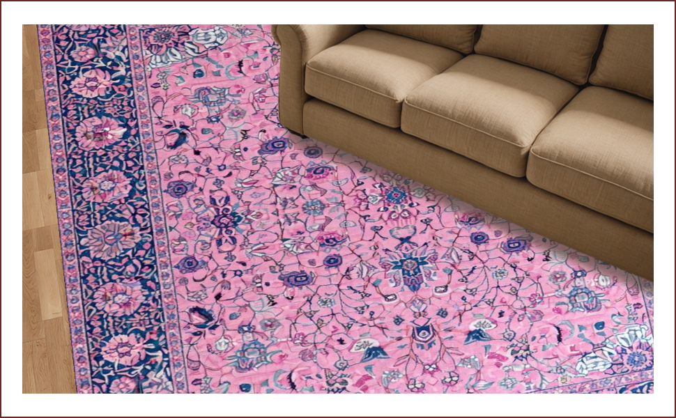 Ultra Soft Area Rug, Non Slip, Stain Resistant, Washable Area Rugs for Living Room, Bedroom, Coastal Oceanic Color Harmony(Pink) Overview: