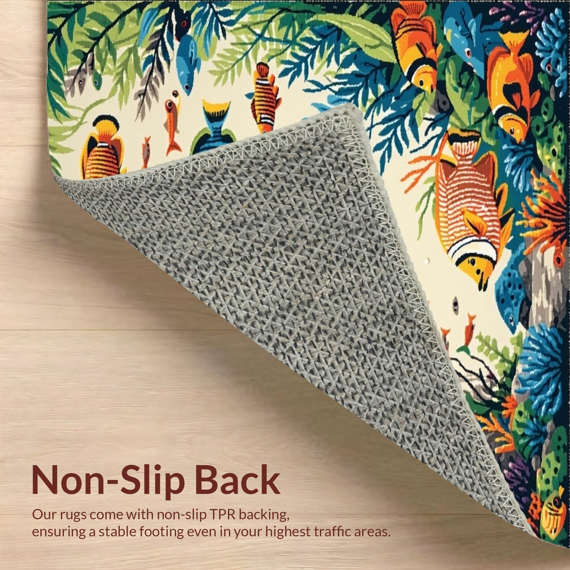 Ultra Soft Area Rug, Non Slip, Stain Resistant, Washable Area Rugs for Living Room, Bedroom, Coastal Paradise Area with Tropical Fish Motif Ideal for Spaces(Ivory) Overview: