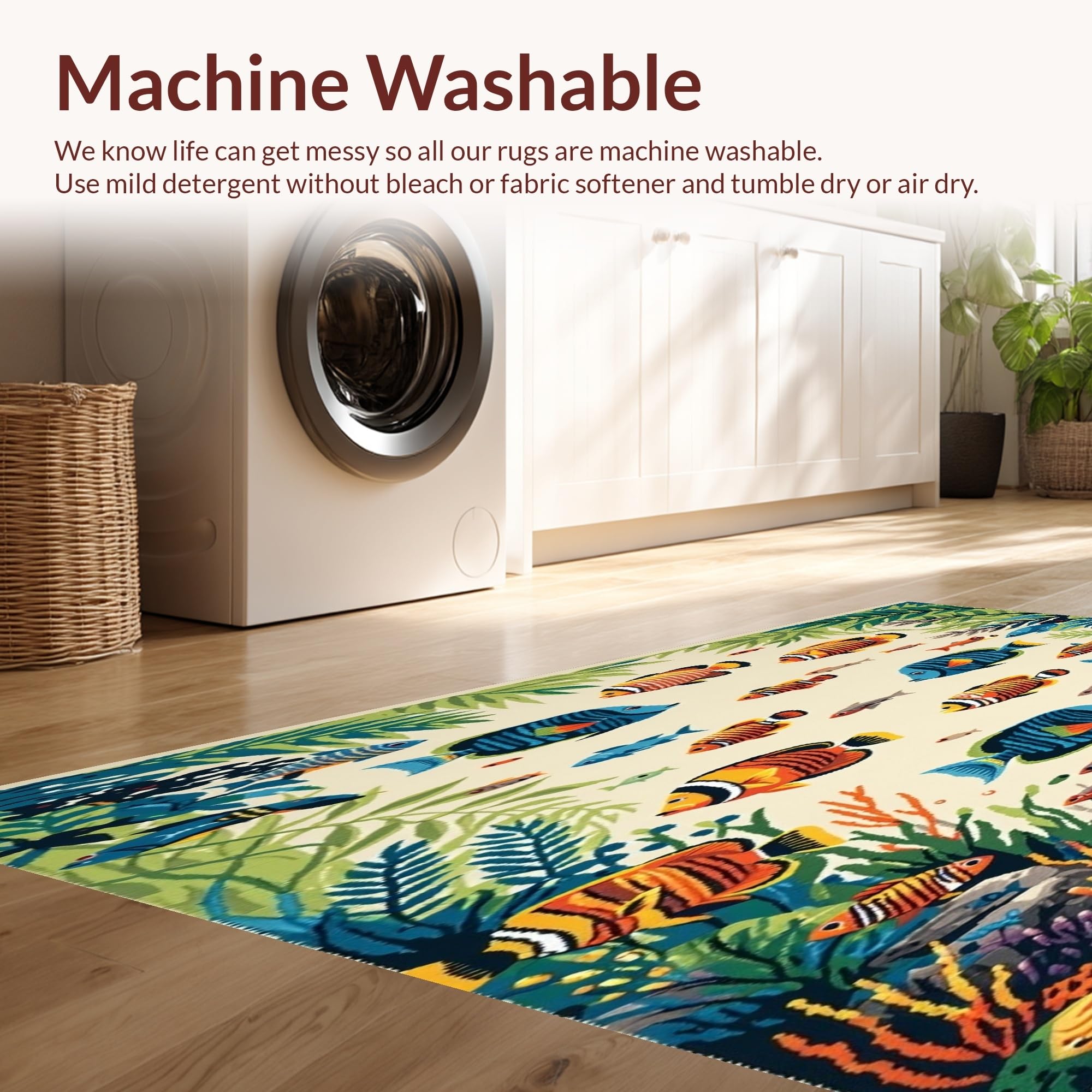 - Machine Washable: Our rugs can be easily thrown in the wash machine.
