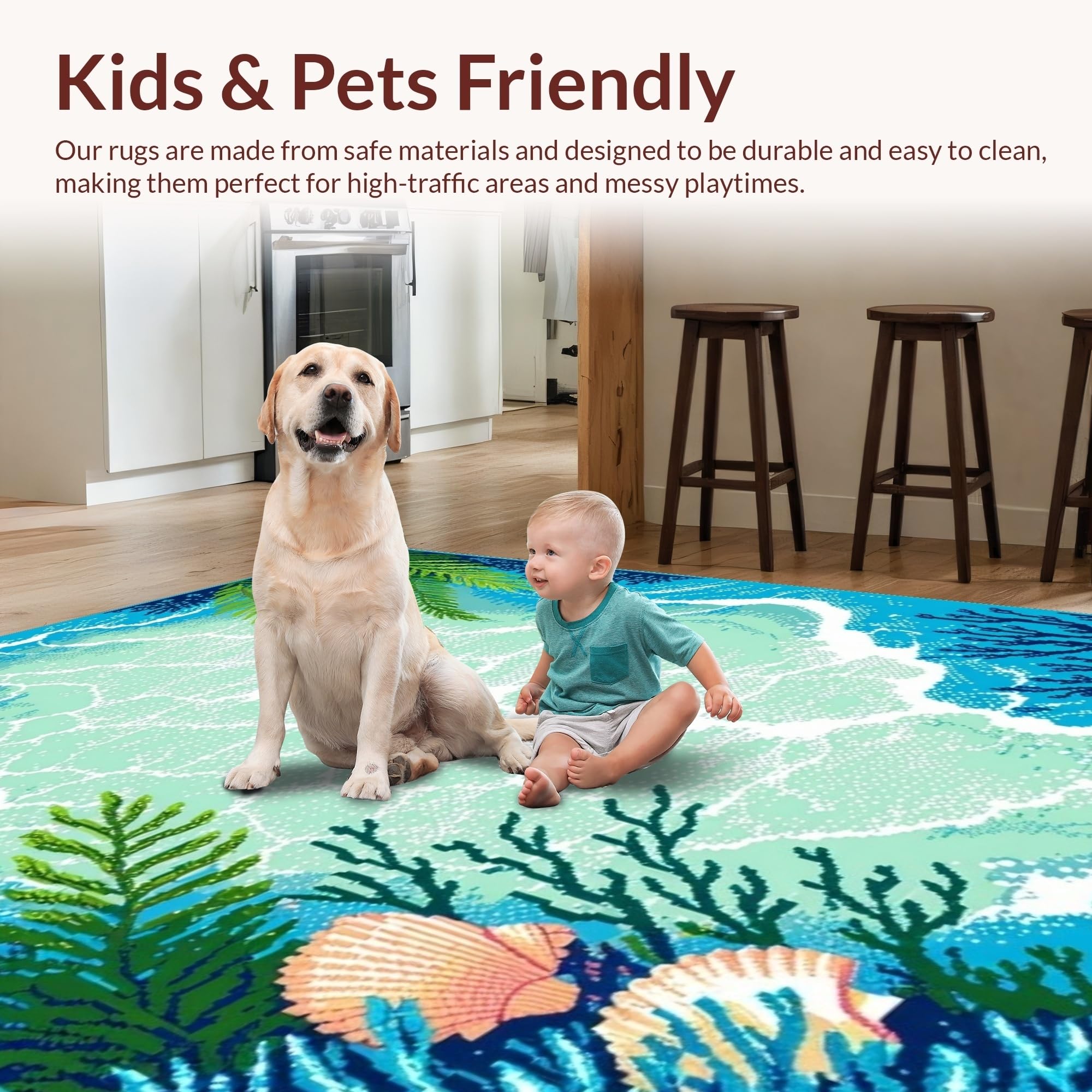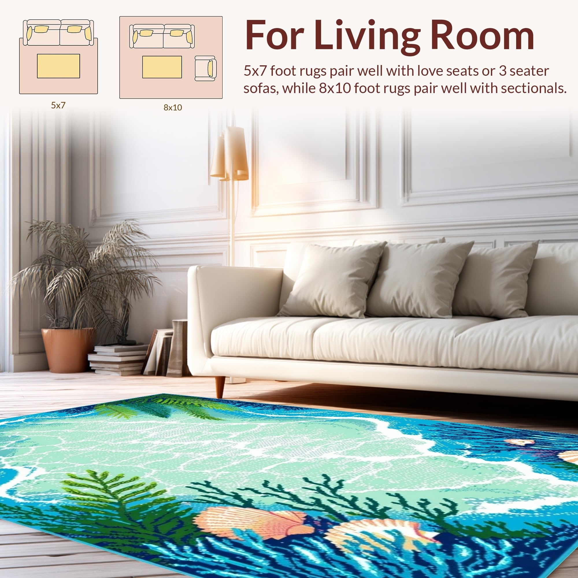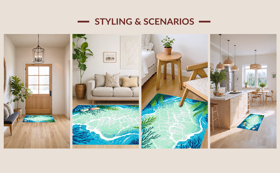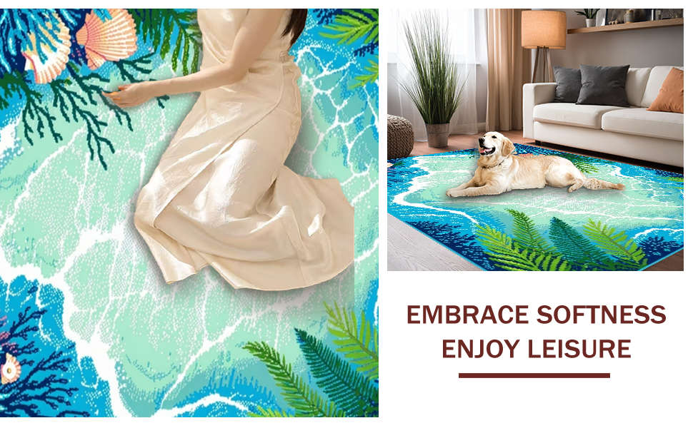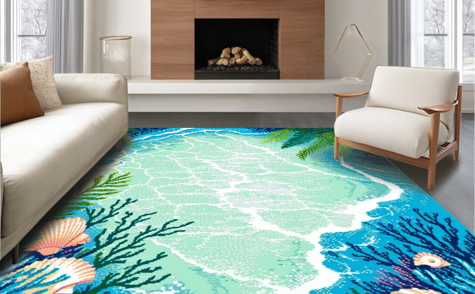 Ultra Soft Area Rug, Non Slip, Stain Resistant, Washable Area Rugs for Living Room, Bedroom, Coastal Vibrant Starfish Motif(Blue) Overview: