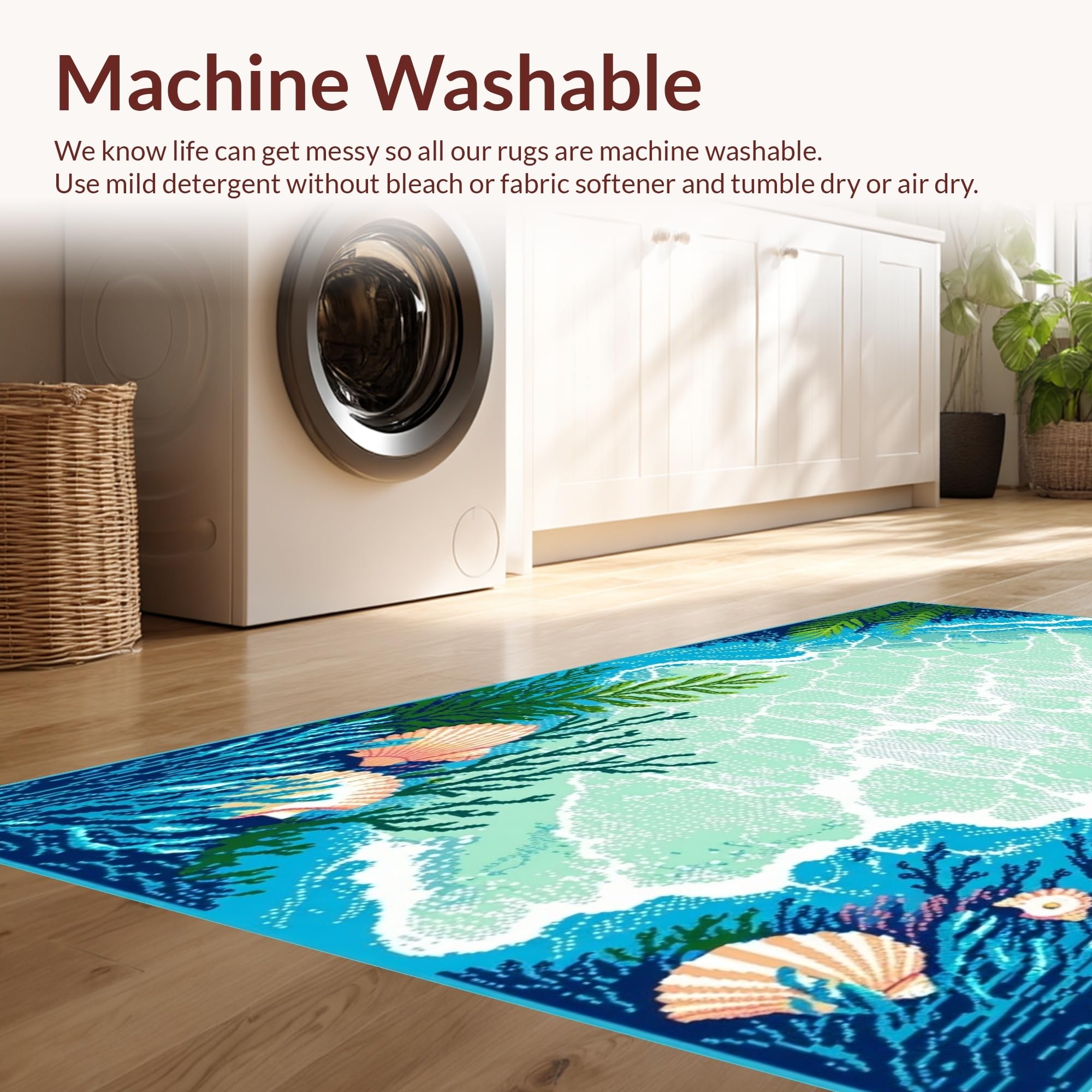 - Machine Washable: Our rugs can be easily thrown in the wash machine.