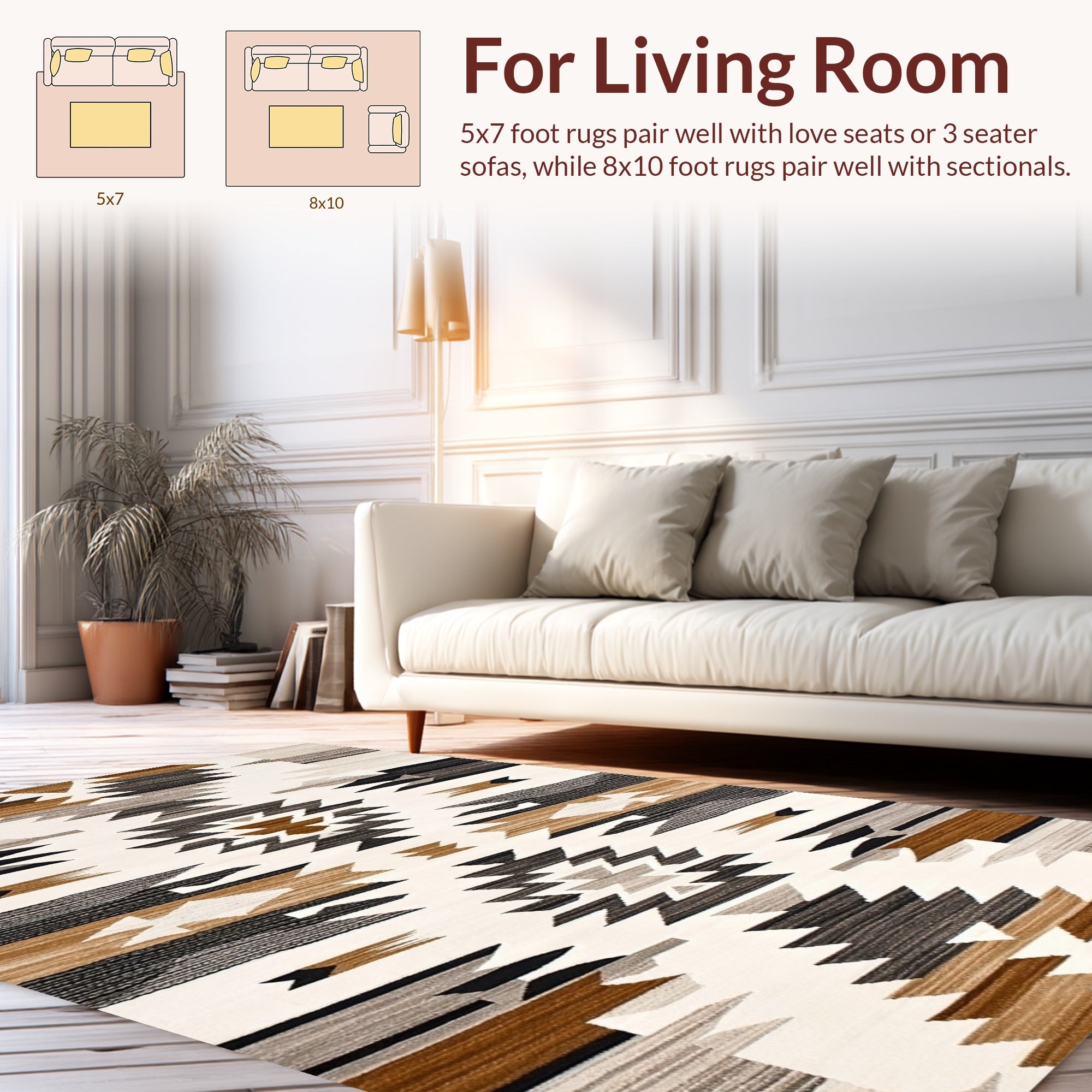 Ultra Soft Area Rug, Non Slip, Stain Resistant, Washable Area Rugs for Living Room, Bedroom, Collection With Rustic Aztec Lines and Modern Abstract Tribal Prints(Gray) Overview: