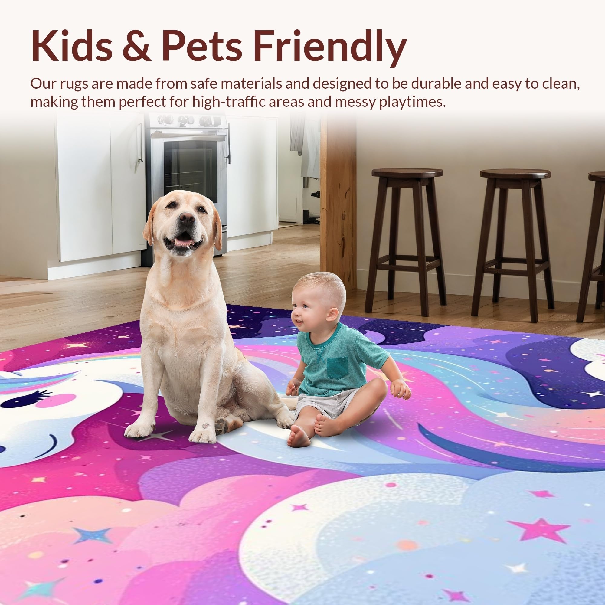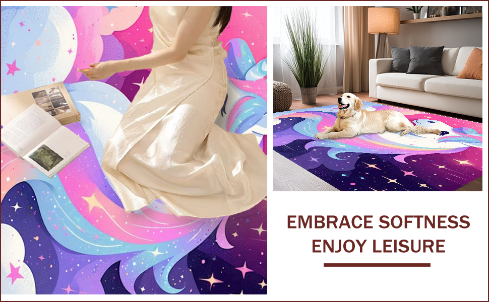 Ultra Soft Area Rug, Non Slip, Stain Resistant, Washable Area Rugs for Living Room, Bedroom, Colorful Abstract Dreamscape Vibe(Pink) Overview: