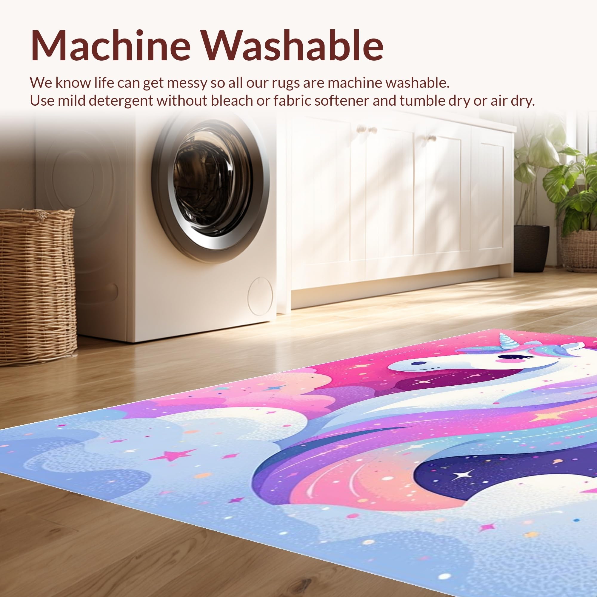 - Machine Washable: Our rugs can be easily thrown in the wash machine.