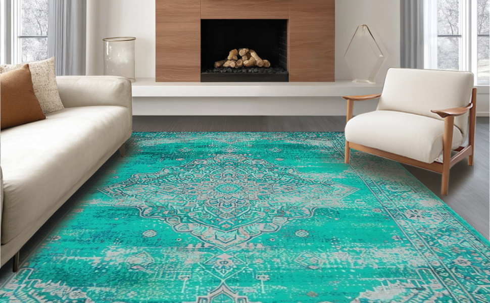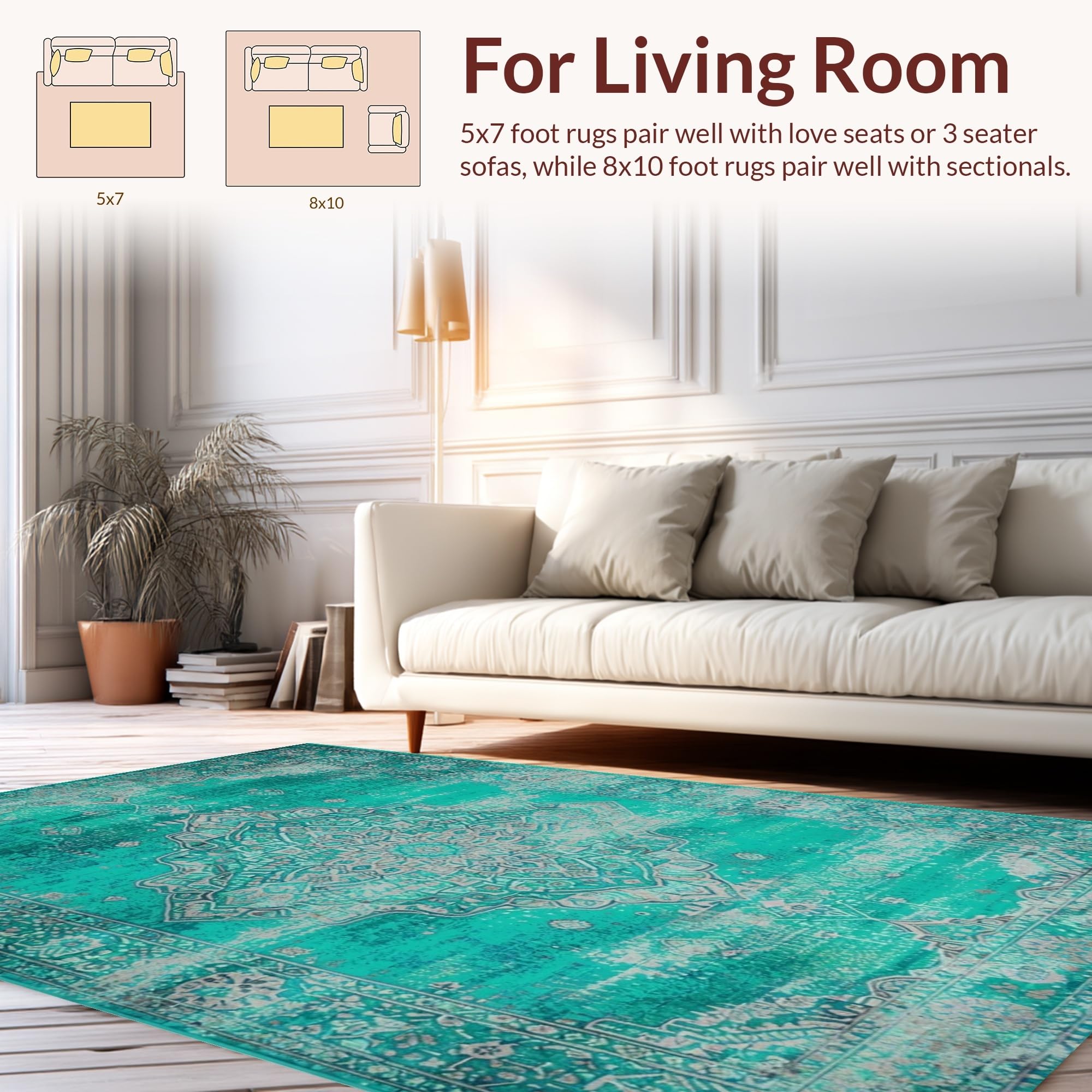 Ultra Soft Area Rug, Non Slip, Stain Resistant, Washable Area Rugs for Living Room, Bedroom, Colorful Abstract Floral Composition(Green) Overview: