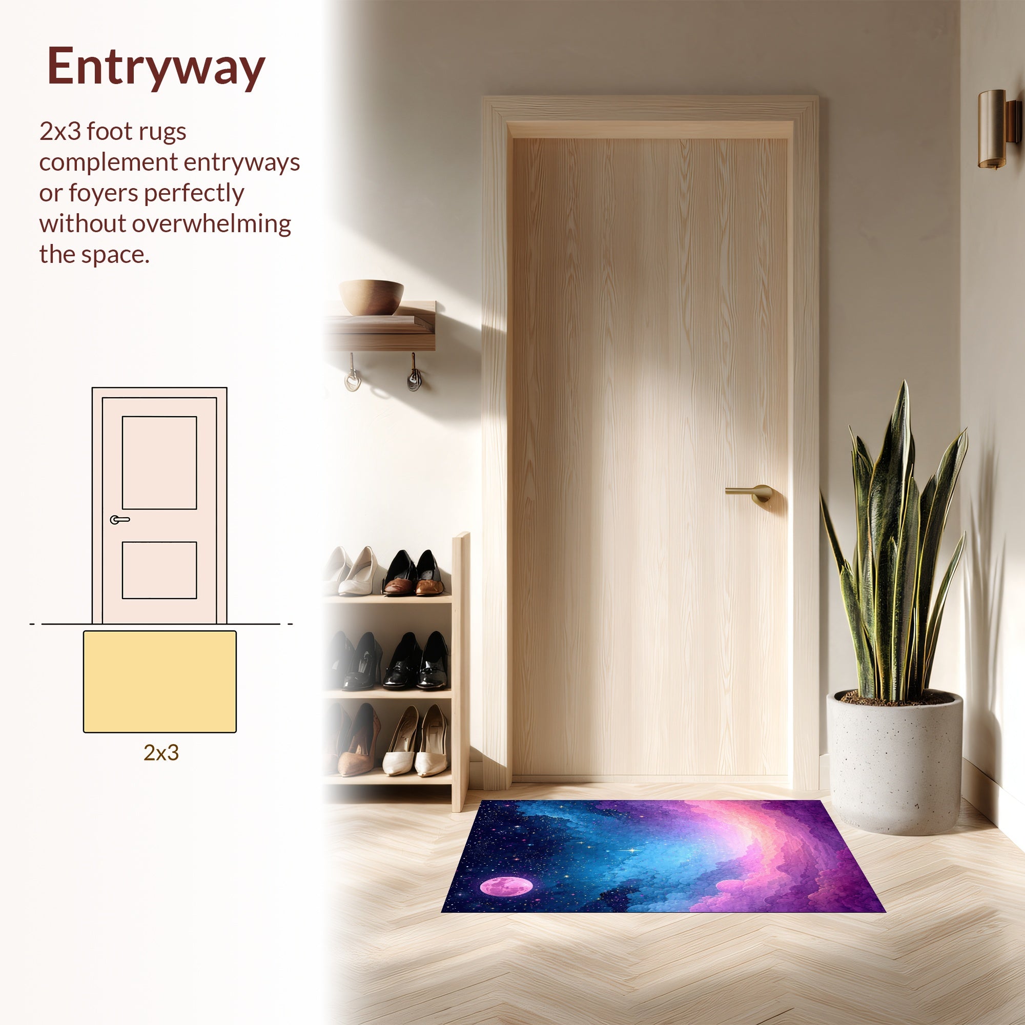 Flatwoven High Traffic Area Rug, Colorful Celestial Dreamscape, Non Slip, Stain Resistant, Washable Area Rugs for Living Room, Bedroom (Blue) Overview: