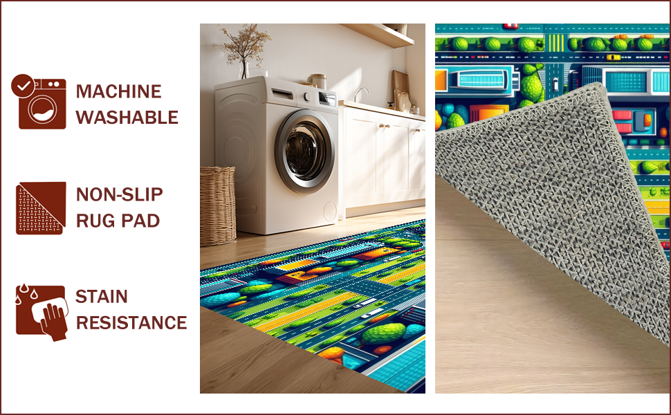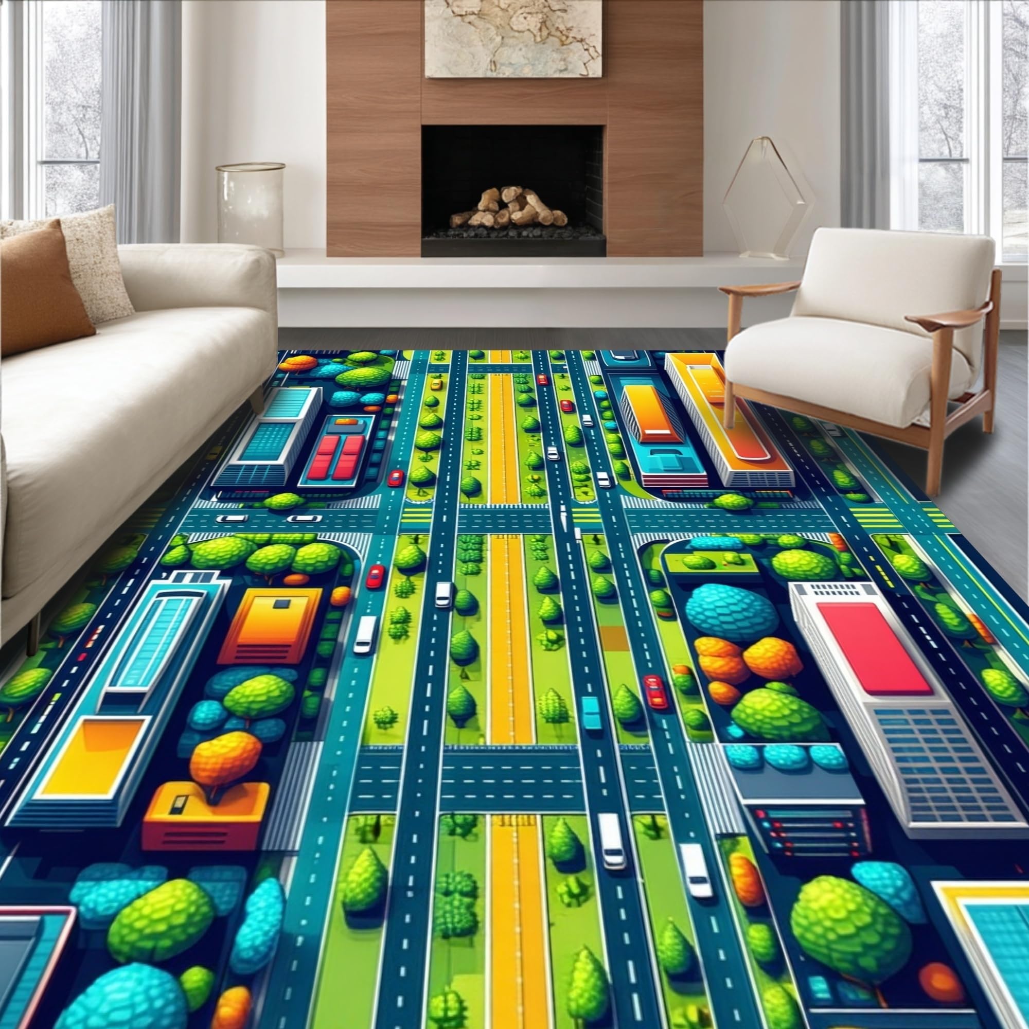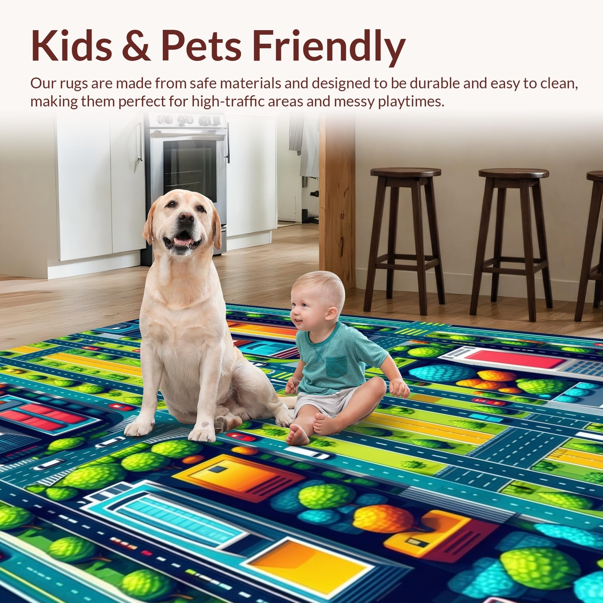 Ultra Soft Area Rug, Non Slip, Stain Resistant, Washable Area Rugs for Living Room, Bedroom, Colorful City Traffic Playroom Educational Rug(Blue) Overview: