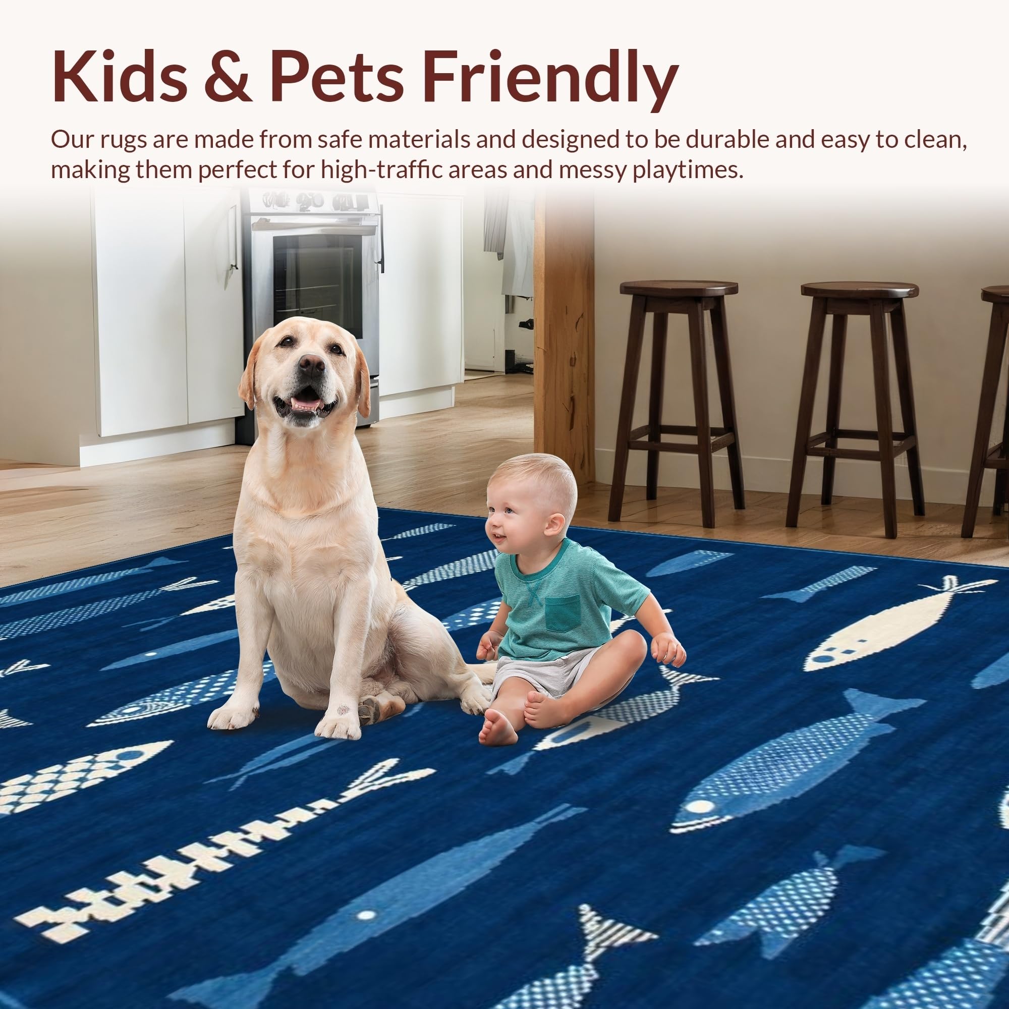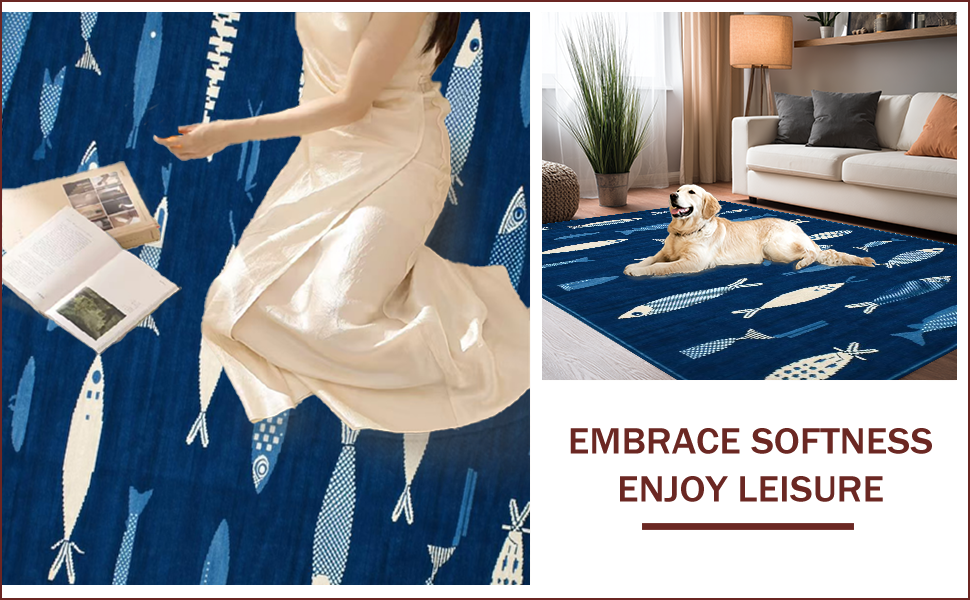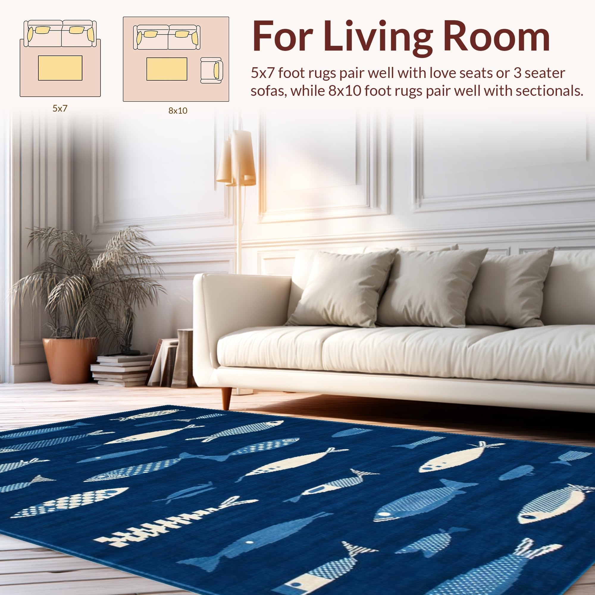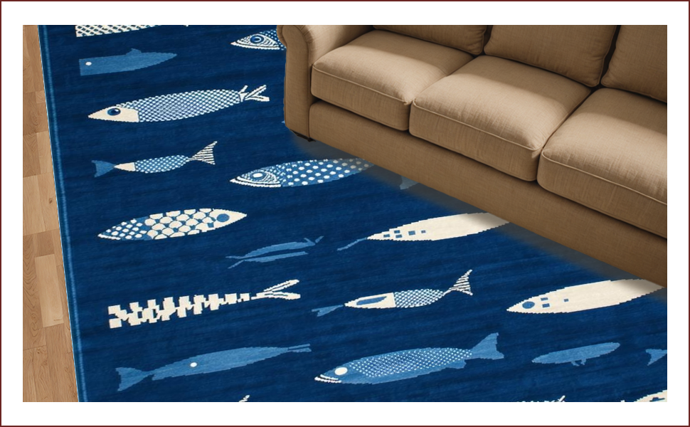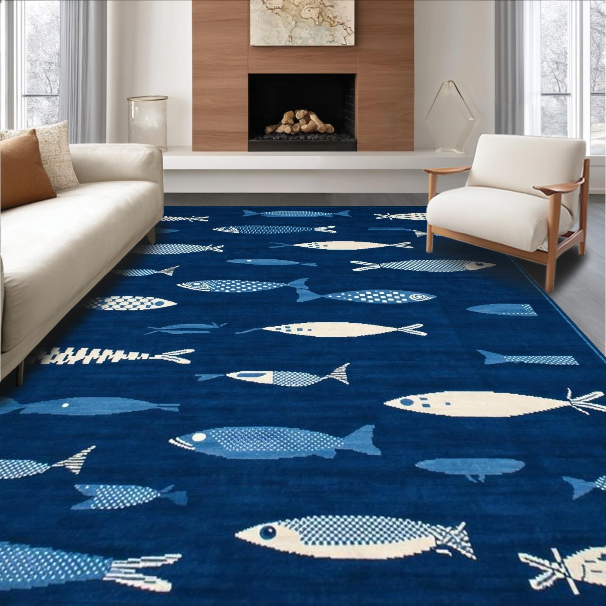 Ultra Soft Area Rug, Non Slip, Stain Resistant, Washable Area Rugs for Living Room, Bedroom, Colorful Fishing Lure Aesthetic(Blue) Overview:
