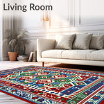 Ultra Soft Area Rug, Non Slip, Stain Resistant, Washable Area Rugs for Living Room, Bedroom, Colorful Geometric Shower Mat Flannel Non Slip(Red) Overview: