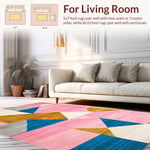 Ultra Soft Area Rug, Non Slip, Stain Resistant, Washable Area Rugs for Living Room, Bedroom, Colorful Modern Symmetrical Design(Pink) Overview:
